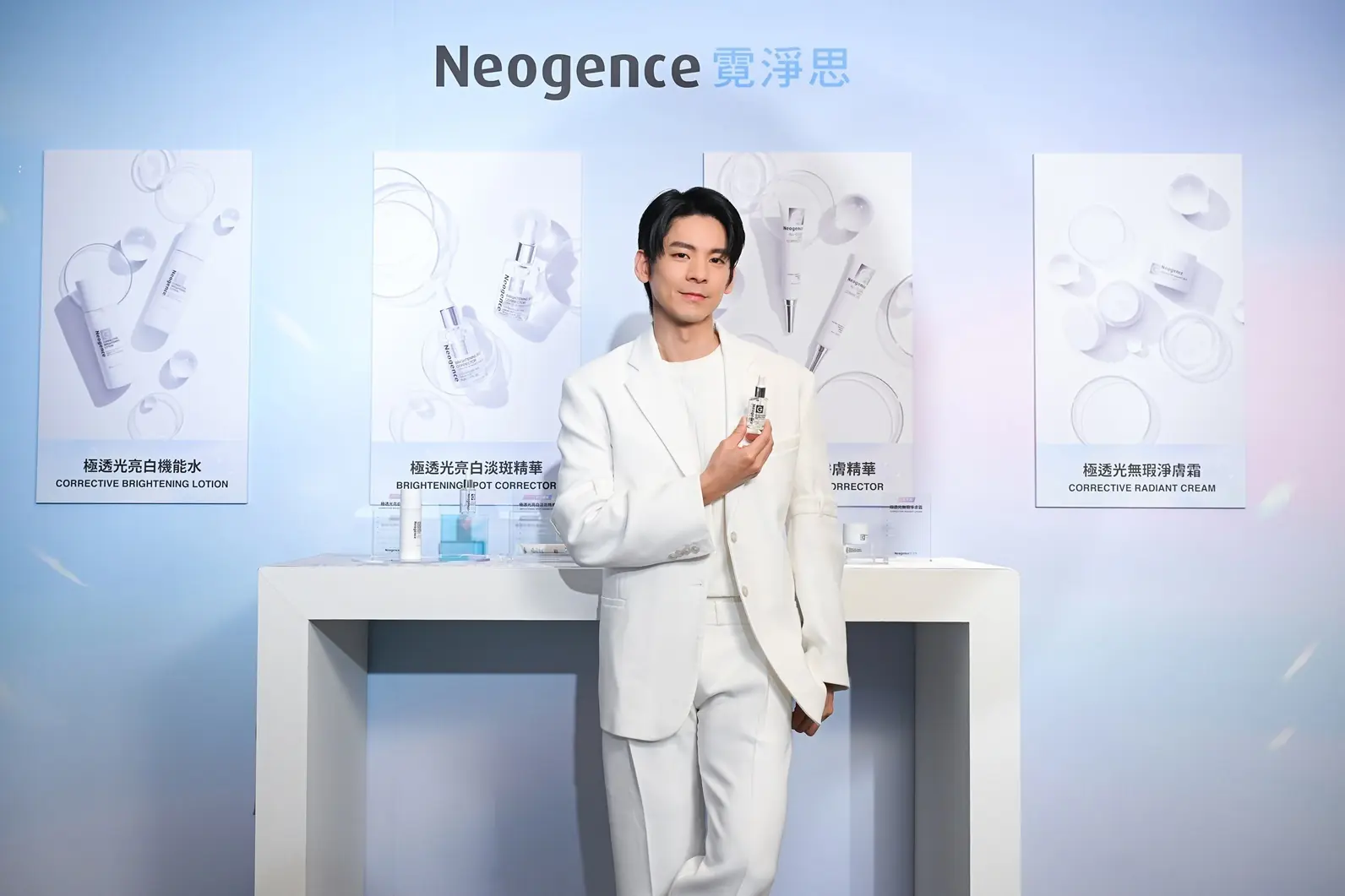 林柏宏透露,身為一名演員,肌膚狀態對工作非常重要。Neogence霓淨思的C+光感超淨白系列讓他在鏡頭前更有自信。林柏宏在活動現場分享自己的亮白秘訣,從化妝水、精華到乳霜,一步步展現如何輕鬆打造無瑕亮白肌。