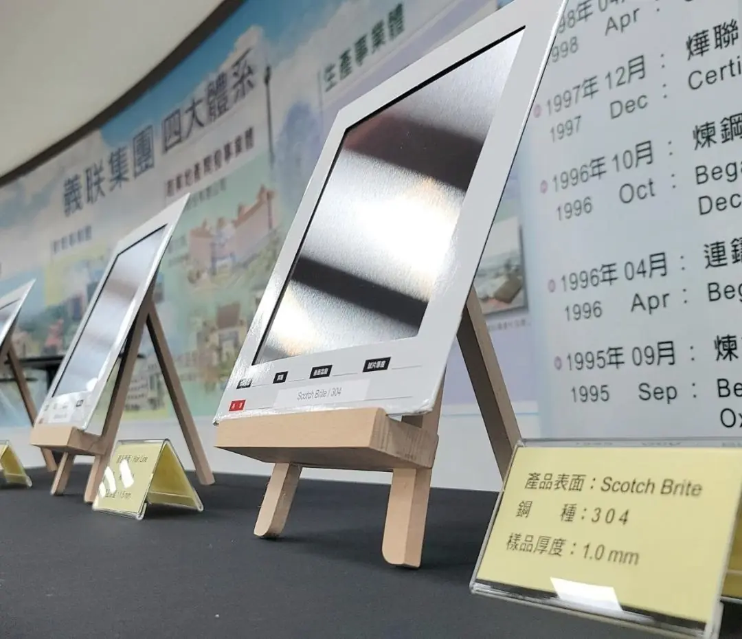 燁聯增設之精密加工產線,設置國內首創的連續式鏡面8K拋光線與連續和紋加工線,可採整捲式生產及銷售,大幅縮減以往逐片拋光方式所需大量人力問題,並可產出整捲表面品質穩定一致性的高端不銹鋼表面精密加工產品,不僅可提升下游客戶的生產效率,更可降低生產成本。透過精密連續式拋砂、連續鏡面8K拋光、連續和紋、壓花輥轉印等多元處理技術,燁聯使不銹鋼展現出多樣化的視覺與觸感效果,也能在不同應用領域中發揮更大的價值。此次說明會中展示了包括HL、No.3、No.4、Rolled-on、SB、8K、亞麻紋、和紋等多種表面處理產品,這些產品不僅滿足了客戶對材質質感、耐用度與美學的高標準需求,更為建築裝飾、3C電子產品、家電設備及高端工業應用提供了全新的解決方案。