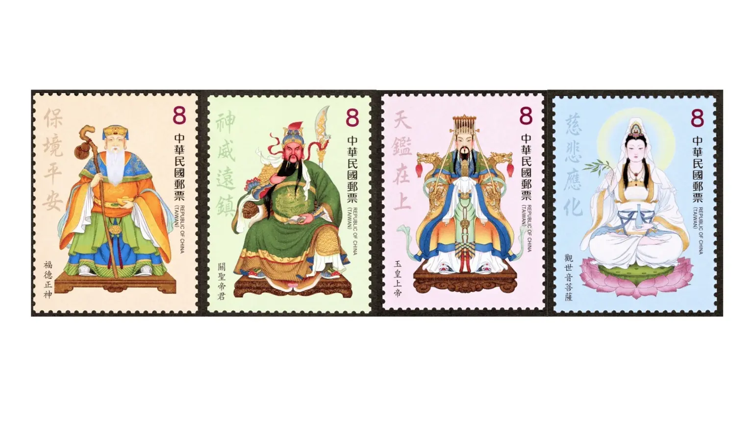 二、臺灣民間信仰郵票(114年版):特種郵票,預定114年4月25日發行。繼111年發行「臺灣民間信仰郵票」後,續以福德正神、關聖帝君、玉皇上帝、觀世音菩薩為主題,發行郵票1套4枚,面值均為8元。
