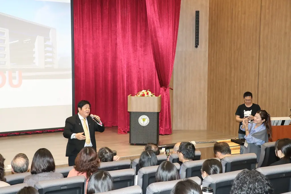 洪明奇校長在就業博覽會致詞時表示,「臺中市立老人復健綜合醫院-委託中國醫藥大學興建經營」BOT案,為台中市民帶來一個結合智慧醫療與全方位高齡照護的創新醫療園區,這座醫院落營運,象徵醫學大學對社會責任的承諾,也為有志者開啟了充滿潛力的職涯道路。