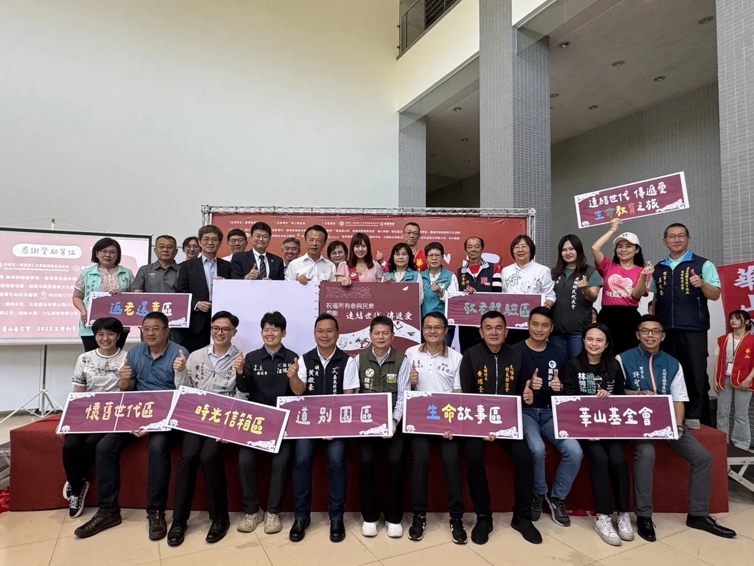 【記者張文一嘉義報導】華山基金會常年為弱勢孤老提供免費到宅服務,4月14日在國立嘉義大學民雄校區大學館,舉辦「連結世代 傳遞愛」生命教育之旅開展記者會,華山服務長者67位到場參與,開展由89歲何阿嬤及幼兒園小朋友兩個不同世代的精彩演出熱鬧揭開序幕,接著邀請嘉義縣長翁章梁、嘉義大學校長林翰謙、感恩聖仁基金會執行長陳宗賢、活動愛心大使柯莉絲汀、民雄鄉長林于玲、義竹鄉鄉長黃政傑等鄉鎮民意代表進行啟航典禮儀式,象徵生命教育之旅的正式啟動。典禮結束後,引領來賓參觀六大展區並實際參與互動體驗,最後透過「生命畫布」創作留下祝福,為活動增添溫馨與意義。