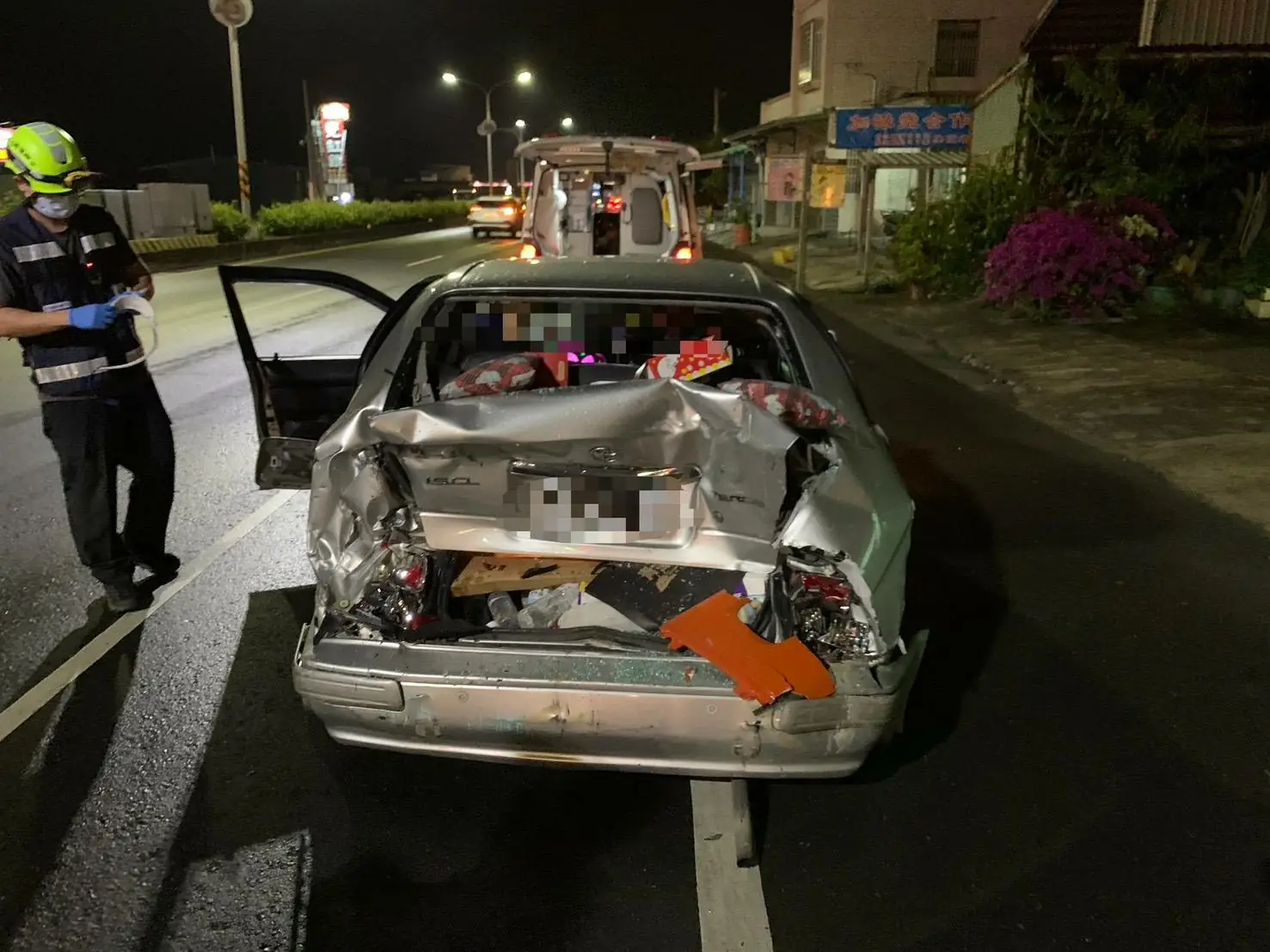 圖:停等紅燈被追撞之自小客車。(枋寮警察分局)