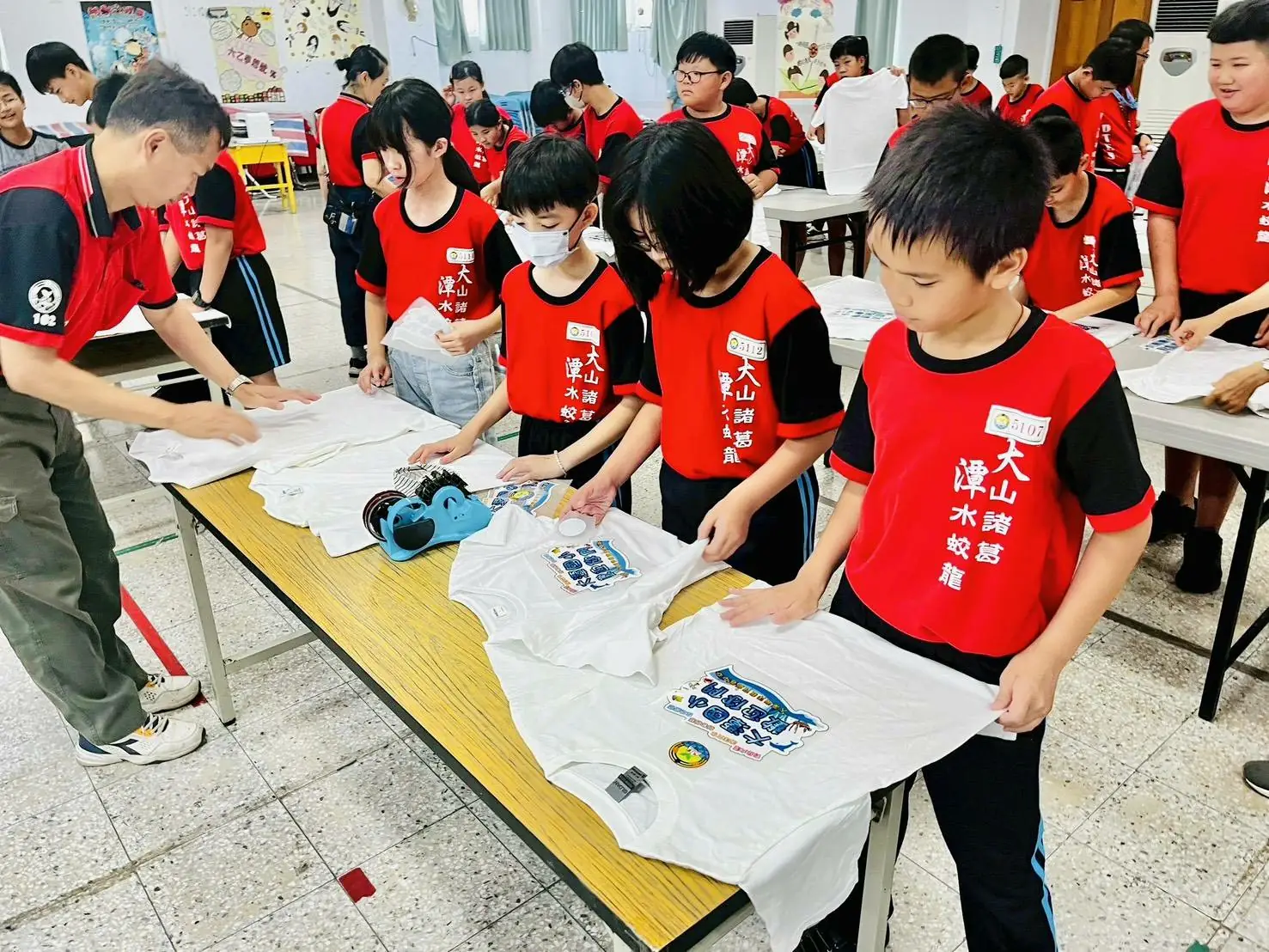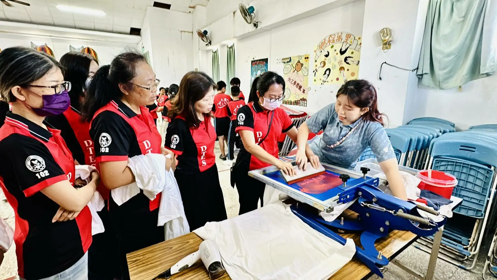 圖3 師長動手做衣服網板印刷。(大潭國小)