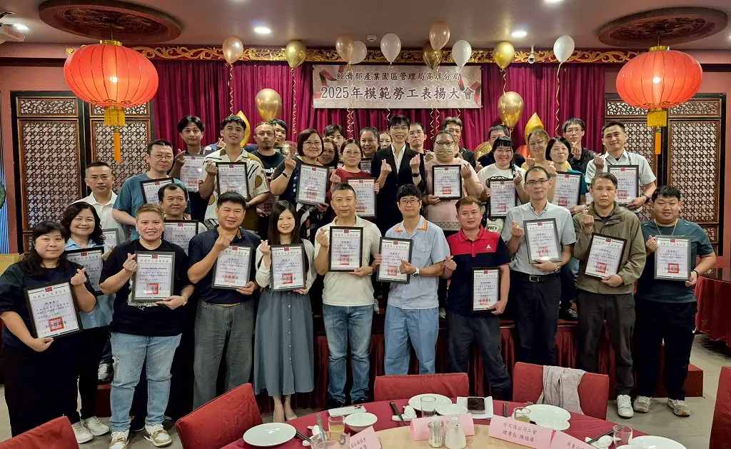[記者吉雄世高雄報導〕 經濟部產業園區管理局高屏分局(以下稱高屏分局)為表揚所轄園區勞工及移工朋友從事生產之辛勞及貢獻,感謝勞工朋友們在每個崗位努力付出,於今(4/25)日舉辦「114年度園管局高屏分局所轄科技產業園區模範勞工表揚大會」,會中表揚36名模範勞工以及9名優秀國際移工。