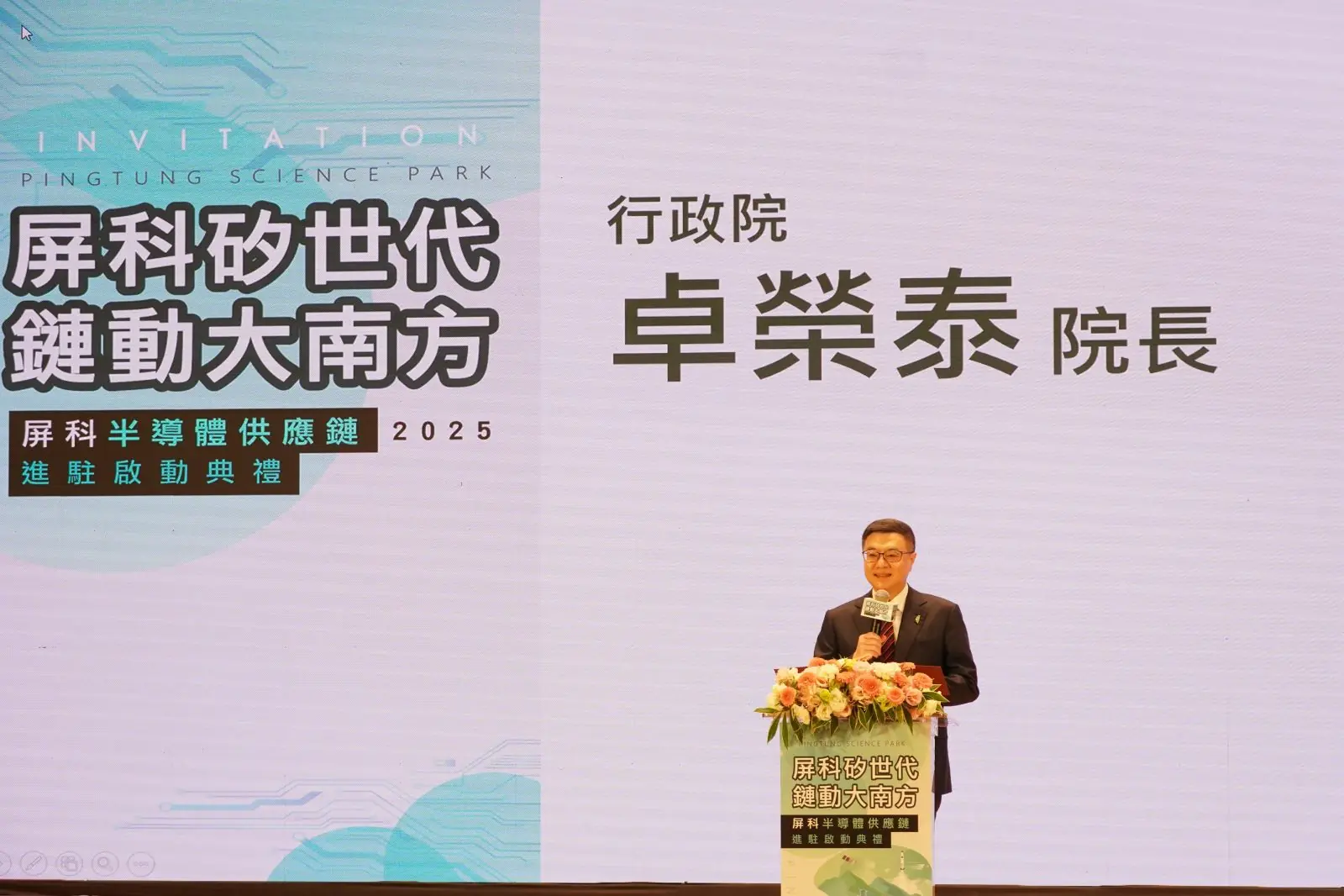 【記者梁秀瓊/屏東報導】台積電半導體供應鏈將進駐屏東科學園區,行政院長卓榮泰19日特地到屏東參加「屏科半導體供應鏈進駐啟動典禮」,強調目前至少有10家台積電供應鏈承諾將進駐屏科,預計明年下半年動工,將是全台首座半導體供應鏈專區,屏東正式成為大南方半導體「S廊帶」關鍵節點。