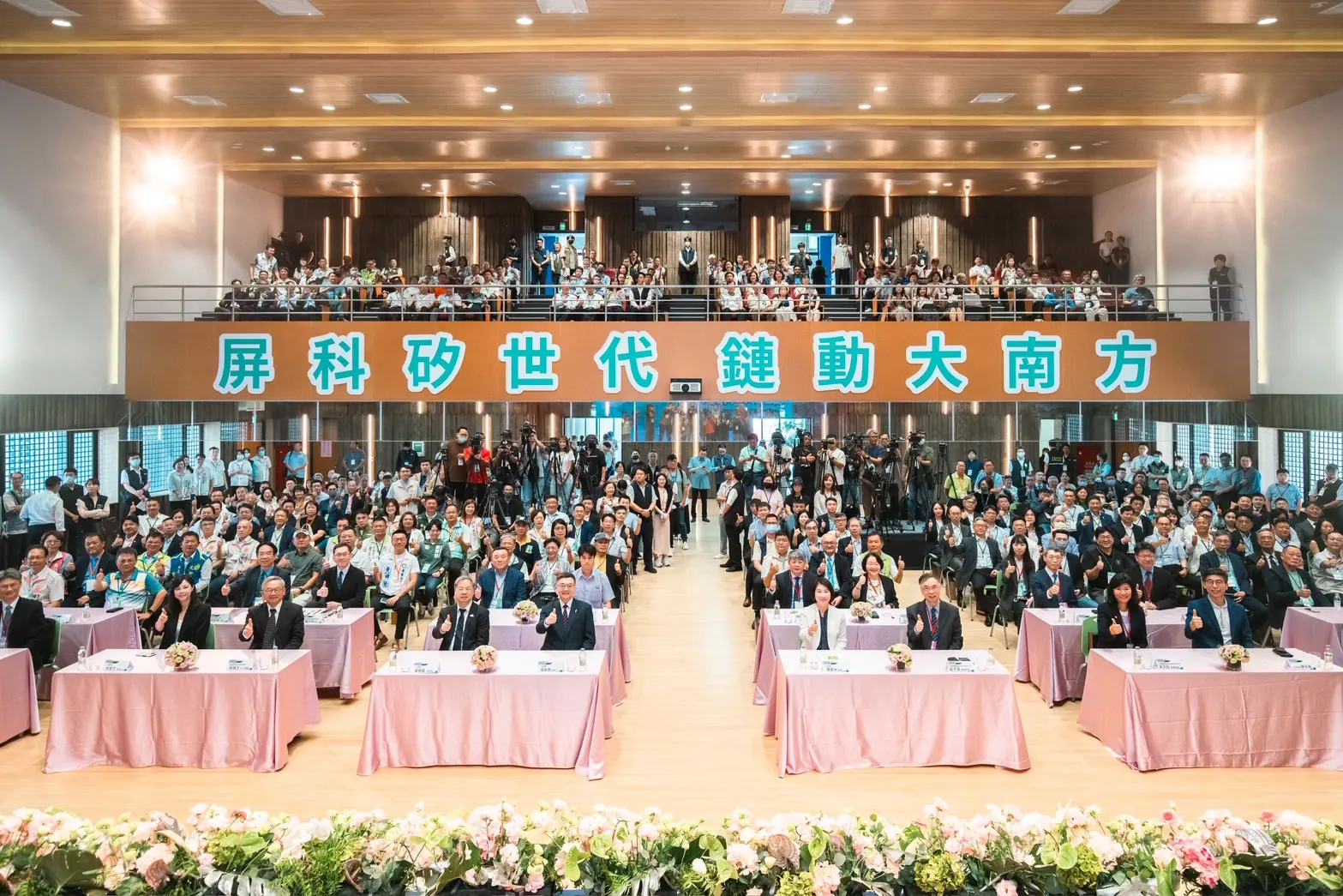 「屏科矽世代,鏈動大南方」啟動典禮上午19日上午10時在屏東縣政府大禮堂舉行,卓榮泰率領國科會主委吳誠文、國科會南科管理局局長鄭秀絨、台積電二位副總經理莊子壽、李文如,屏東縣副議長盧文瑞、與200多位產官學業界人士共同見證半導體產業鏈深耕屏東、展望全球布局的重要時刻。