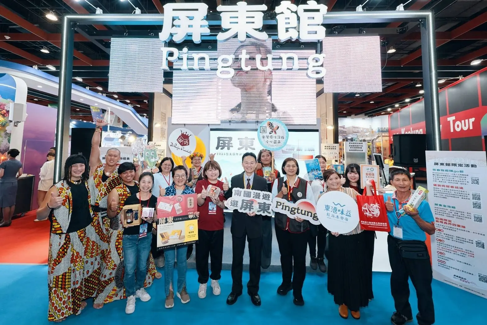 【記者許進輝台北報導】 2025台北國際觀光博覽會自5月23日至26日一連四天於台北世貿一館盛大登場,屏東縣政府府以「恆春建城150週年」為主題,以古鎮的文化底蘊為核心延伸,疊加現代手法結合多種數位屏幕搭配及布幔穿插運用,重新演繹展區新印象;開館表演由恆春在地深耕搖搖鼓樂團將傳統排灣族舞蹈結合充滿節奏感的歡樂鼓樂為展覽揭開序幕,屏東館四天展期準備豐富贈禮,邀請民眾前來展區互動、把精緻好禮帶回家。