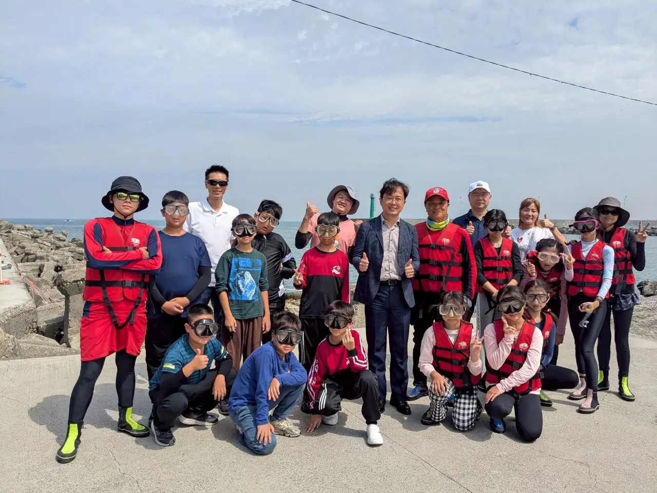 【記者陳雯萍高雄報導】陽光灑落在高雄彌陀海岸,十五名南安國小學童身穿防寒衣、屏氣凝神,在教練引導下走入海中,親自觀測鈕扣珊瑚的生長狀況。這場別具意義的水下實作課,是國立高雄科技大學USR模範計畫「台17漁村實踐計畫」第四期的行動之一,今(26)日自永安延伸至彌陀與梓官,讓更多孩子成為具備海洋保育DNA的小小公民。