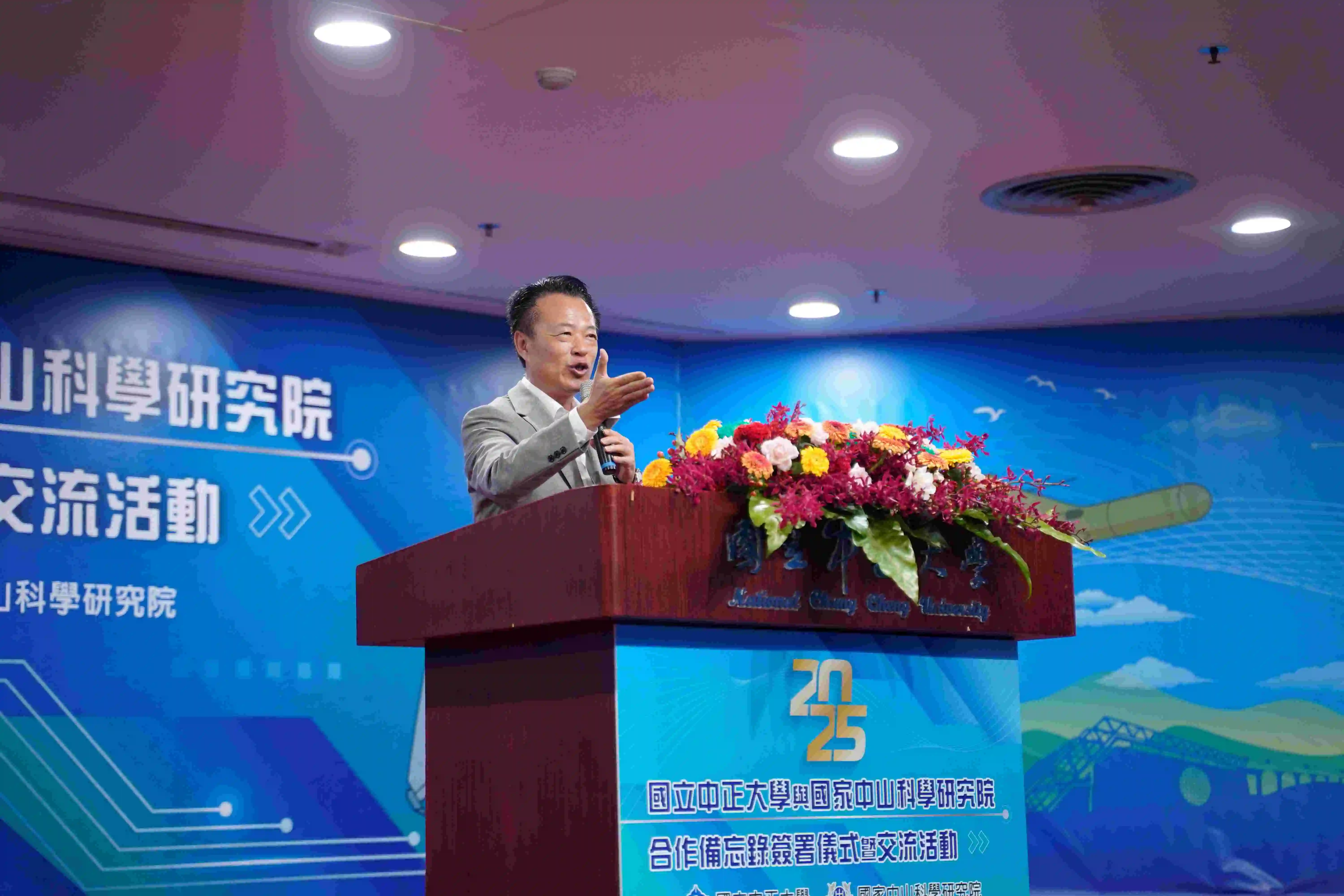 中正大學校長蔡少正表示,今天是極具意義的一刻,中正是南部高等教育與科技創新的重要節點,中科院在民雄設立「航太暨無人機園區」,將成為前瞻技術研發與產業轉化的重點基地,雙方的合作,不僅是機構間的結盟,更是地方與國家發展戰略的交會點。
