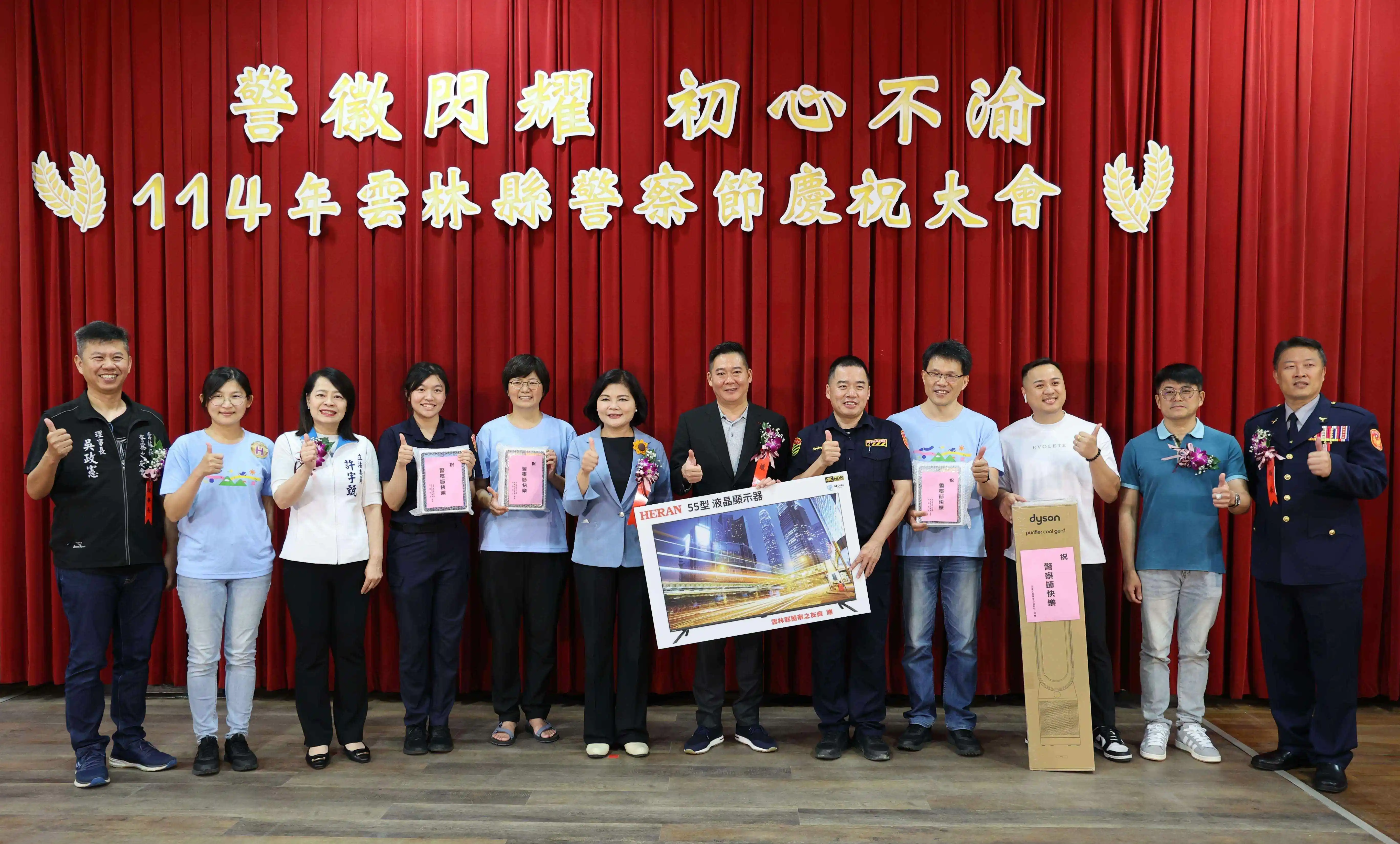 員警們摸彩得到55吋電等大獎笑滿懷 (黃金郎攝)