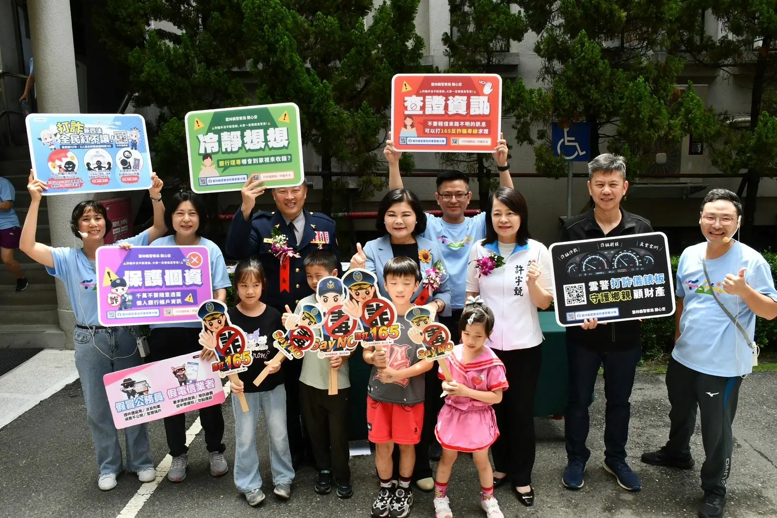 雲林縣警察局今年警察節慶祝活動以園遊會及趣味競賽方式辦理,內容包羅萬象,民眾不僅能大啖在地美食、原住民風味料理與新住民特色飲品,現場設有「不准不拍照」、「抱警處理」等趣味標語,吸引許多民眾拍照打卡,場面十分熱絡;此外,活動現場還設置包含反詐騙、婦幼安全、毒品防制、交通安全、指紋鑑定等多個宣導闖關攤位,讓民眾在遊戲中也學習實用知識。