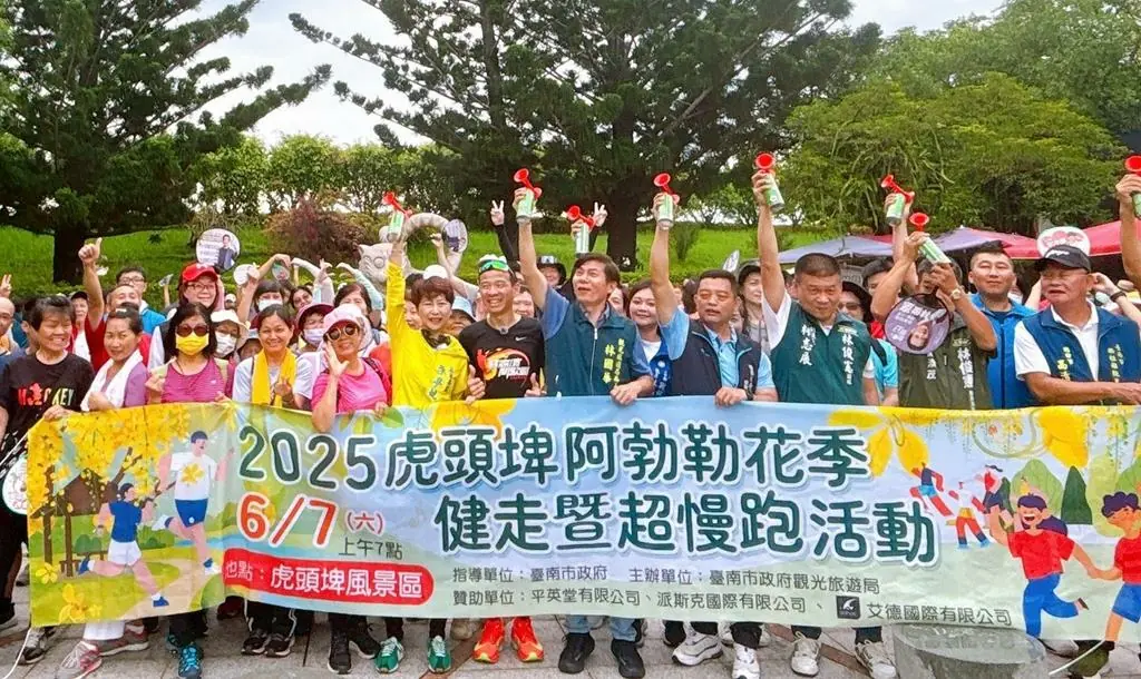 【記者黃潔台南報導】臺南市新化虎頭埤風景區阿勃勒花朵6月火力全開,黃澄澄花海美不勝收,南市府觀旅局「2025虎頭埤阿勃勒花季健走暨超慢跑活動」7日於虎頭埤熱情登場,吸引逾600位民眾參與,觀旅局長林國華、立委陳亭妃、副議長林志展等各民代代表、新化區農會總幹事林侑融、臺南168產業觀光發展協會理事長林伯壎、西拉雅觀光產業協會總幹事高清南等聯合為活動揭幕,並與民眾一起賞花健走,參與這場黃金花雨盛會。