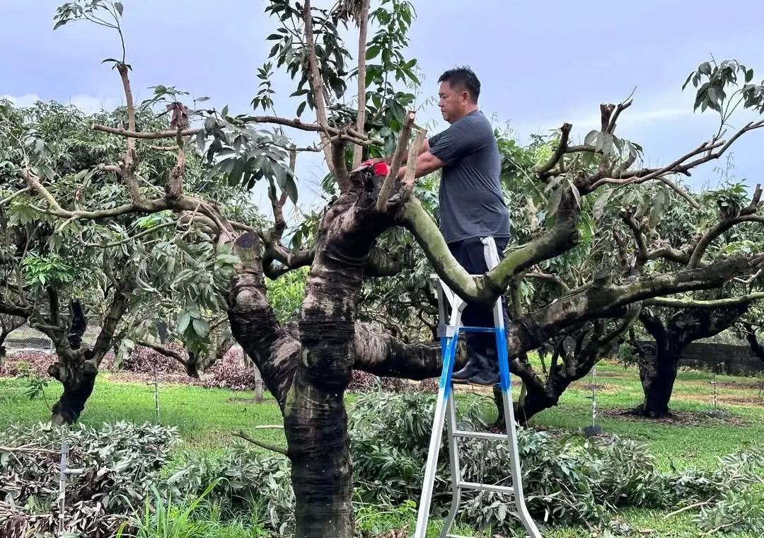 迦南身障養護院福樂農園採收玉荷包後 荔枝樹必須矮化修剪 培養新的結果樹枝