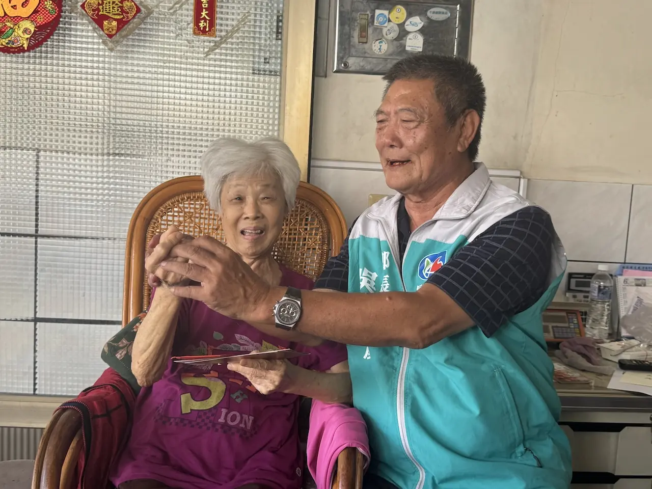 吳亮慶是在德榮村長林明成與代表廖德進等人陪同下拜訪94歲邱連成與90歲邱鍾閏妹夫妻,他請教兩人相處之道,原來太太生氣時,先生就離開,先生生氣時,太太就沈默,「互相忍讓,這樣子就吵不起來」。