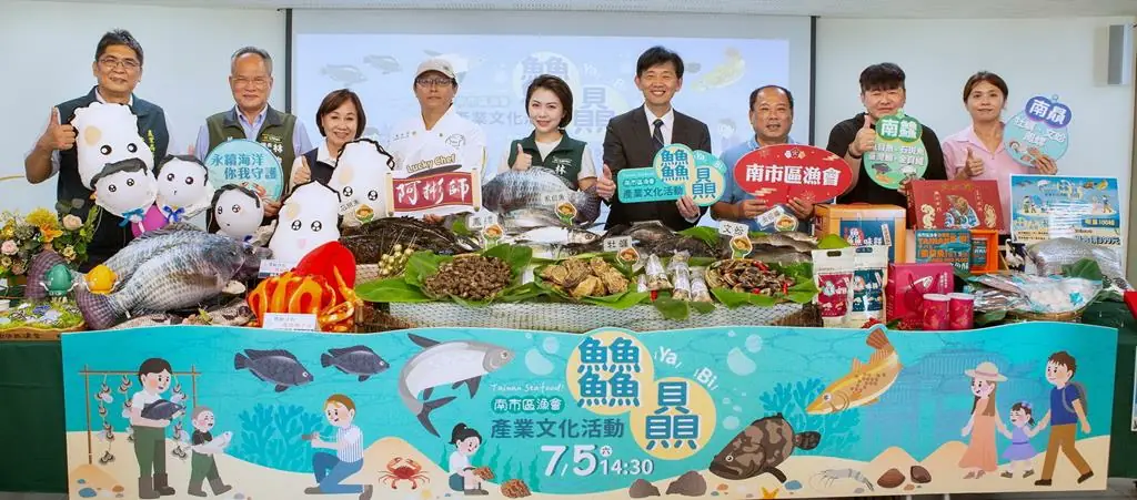 【記者黃潔台南報導】為行銷在地優質漁產,臺南市區漁會7月推出「臺南䲜(ya)贔(bi)產業文化活動」,結合美食饗宴、漁村文化、親子體驗與海洋永續,展現臺南漁業多元魅力;18日並於漁會舉行造勢活動,副市長葉澤山、農業局長李芳林,南市漁會理事長方裕豐、常務監事鄭奐彬、總幹事林鈺昕以及議員黃麗招、林依婷介紹每年秒殺的美食辦桌菜色,歡迎大家來品嚐臺南最鮮的海產,饗宴訂桌6月19日上午9點起開放報名。