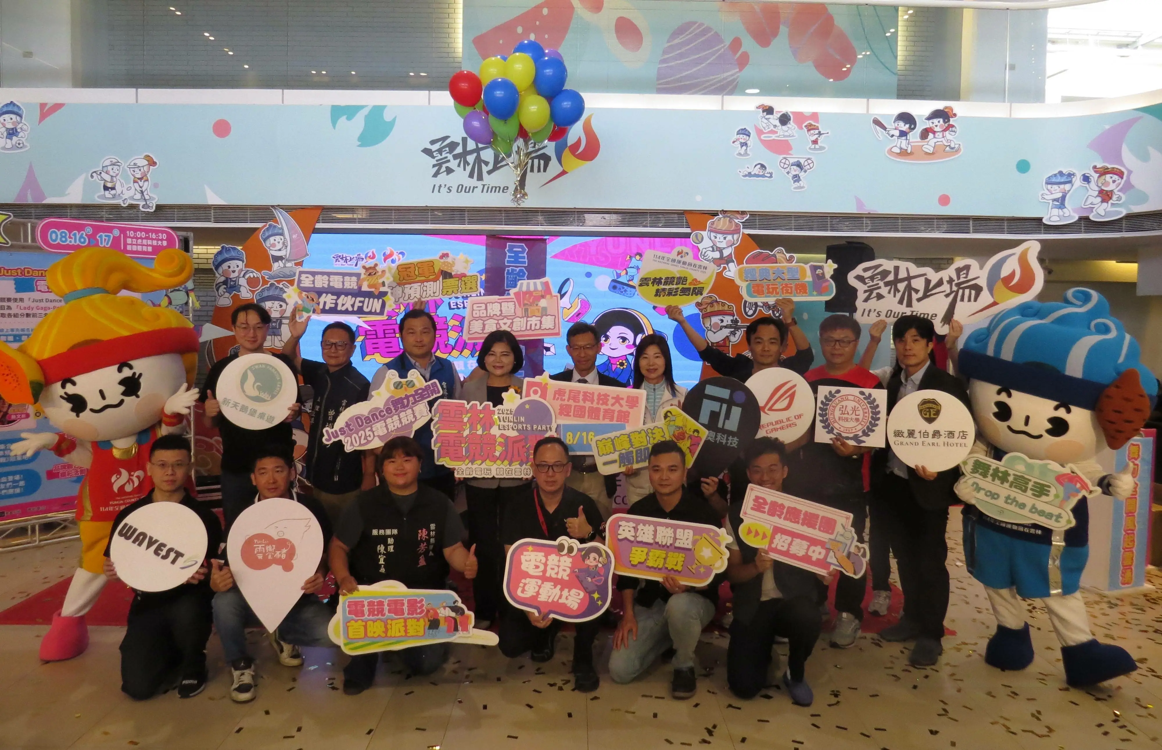 縣長張麗善、新聞處長陳其育、虎科大副校長方昭訓、國際電競產業中心執行長黃建基等人廣邀全國民眾來雲林參加電競派對 (黃金郎攝)