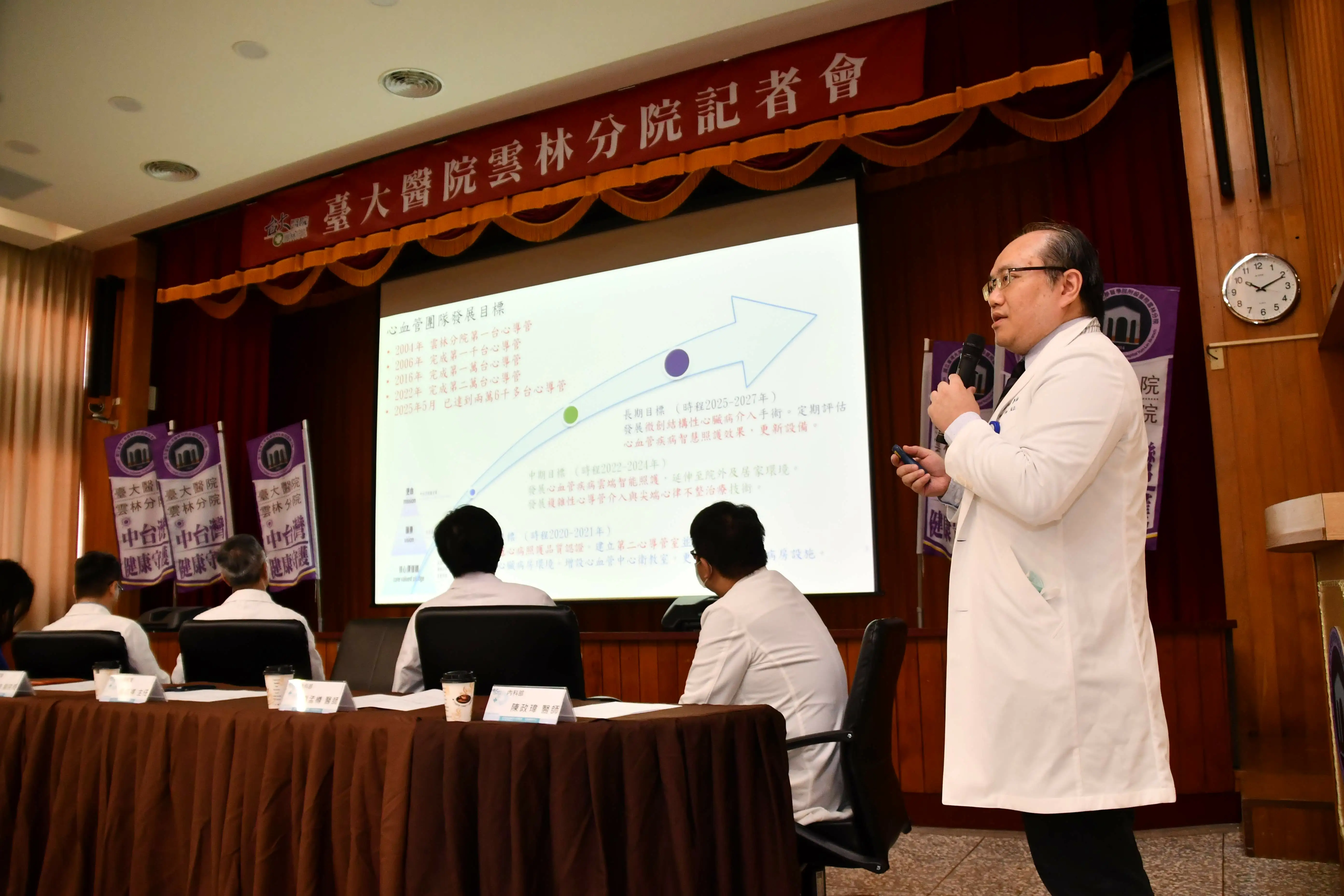 心導管室楊紹祺主任簡報說明高階心導管設備可強化尖端醫療量能 (黃金郎攝)