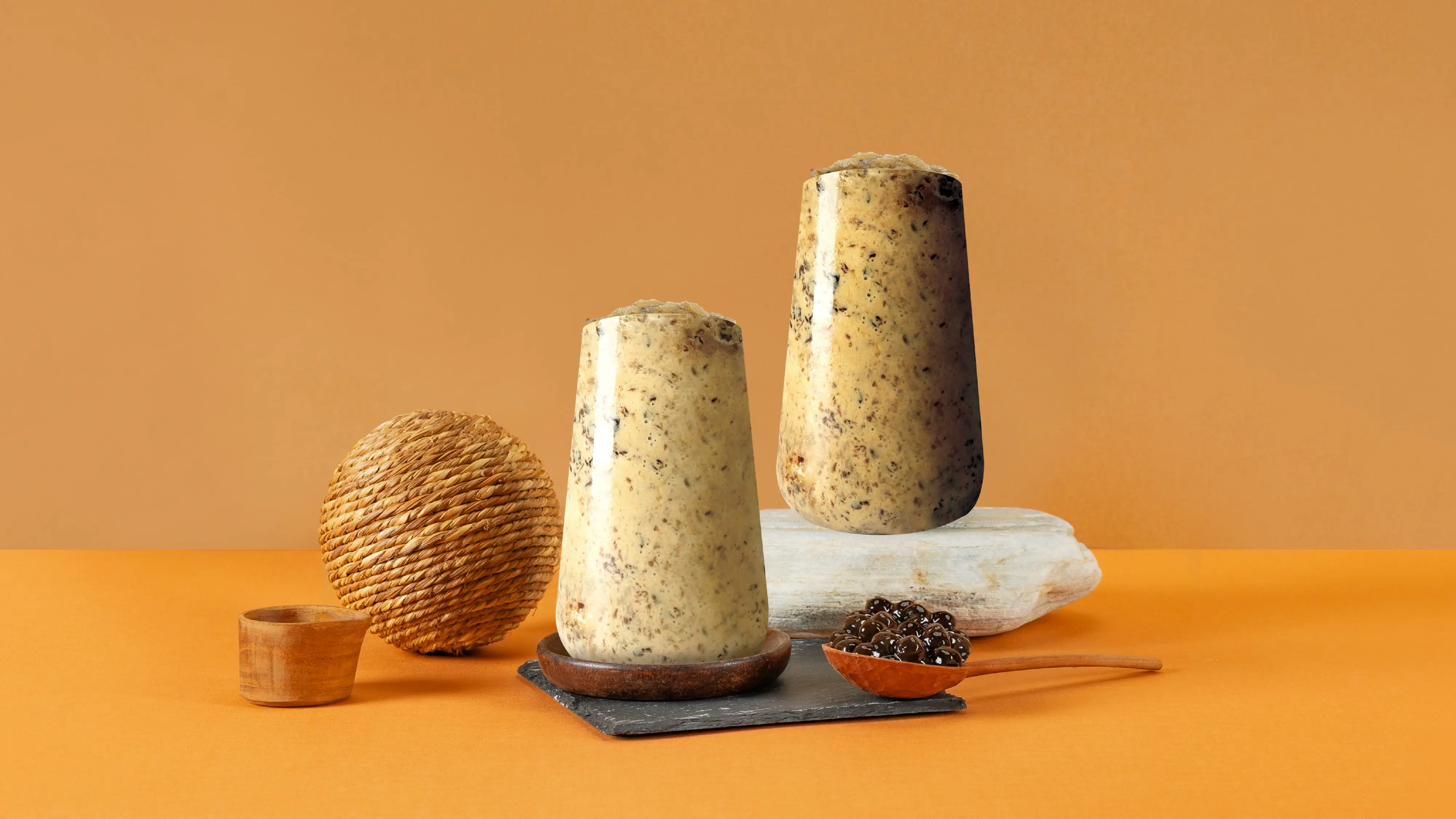 不同於傳統珍奶飲用形式,「黑糖珍珠碎碎冰」特選帶有焦香味的黑糖漿、慢火熬煮的波霸珍珠,加入奶香基底中一同打碎,波霸珍珠完美融入冰沙中,無需費力咀嚼亦能享受珍珠奶茶的濃郁香氣與細緻咬感。
