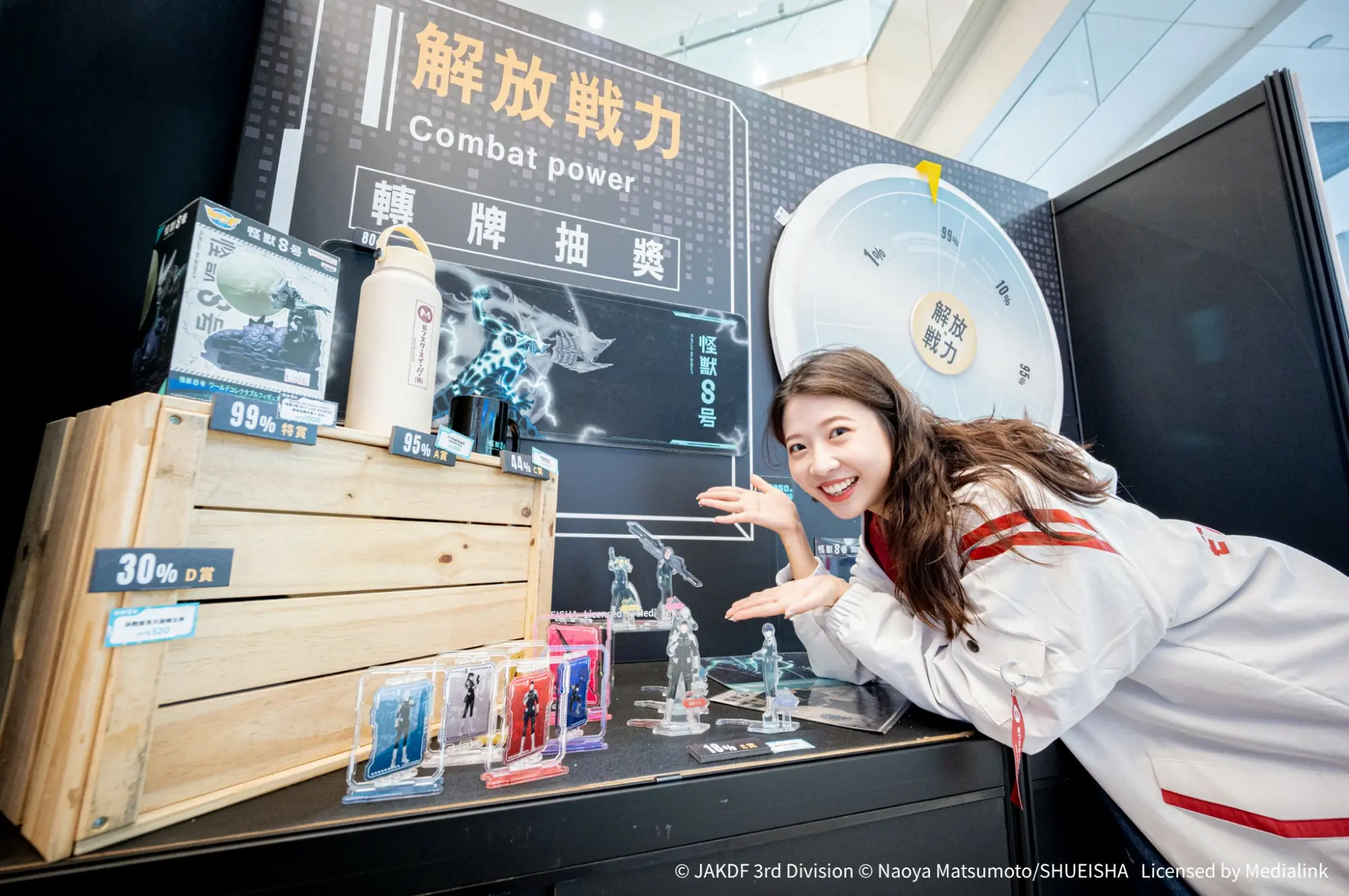 現場最震撼的視覺焦點,高度還原的怪獸 8 號超擬真立體模型!霸氣姿態、帥氣現身,如同動畫場景瞬間實體化,成為必拍打卡熱點。除了怪獸本尊,現場更打造多個拍照熱區與人物牆,讓粉絲穿梭其中,彷彿親臨日比野卡夫卡的防衛戰場,沉浸感爆表!