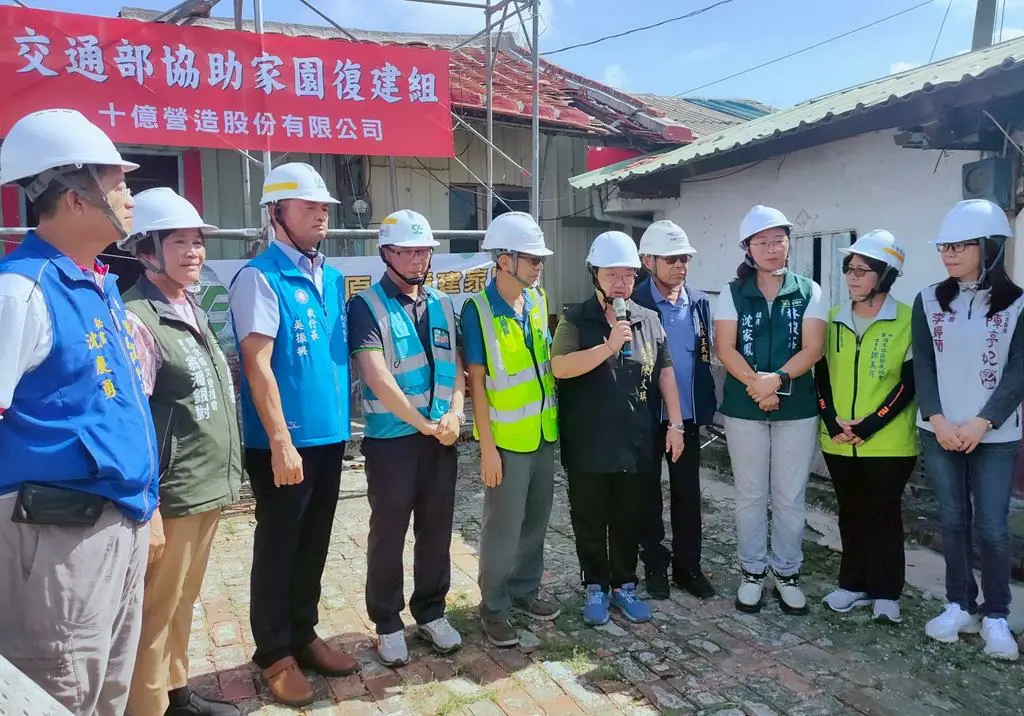 【記者黃潔台南報導】受丹娜絲颱風災害侵襲影響,臺南市受損民宅及公共設施眾多,為加速復原速度,總統賴清德及行政院長卓榮泰指示交通部相關部會共同全力投入;交通部公路局認養臺南鹽水區,並媒合11家廠商積極投入災害復原重建家園工作;十億營造6日開工先行免費幫鹽水區低收入戶民眾修繕房屋,另也致贈慰問金予住戶表示關懷之意,公路局雲嘉南分局長郭清水、鹽水區長陳文琪均出席見證,感謝廠商發揮人饑己饑、人溺己溺的精神,讓社會更溫暖、讓愛遠播