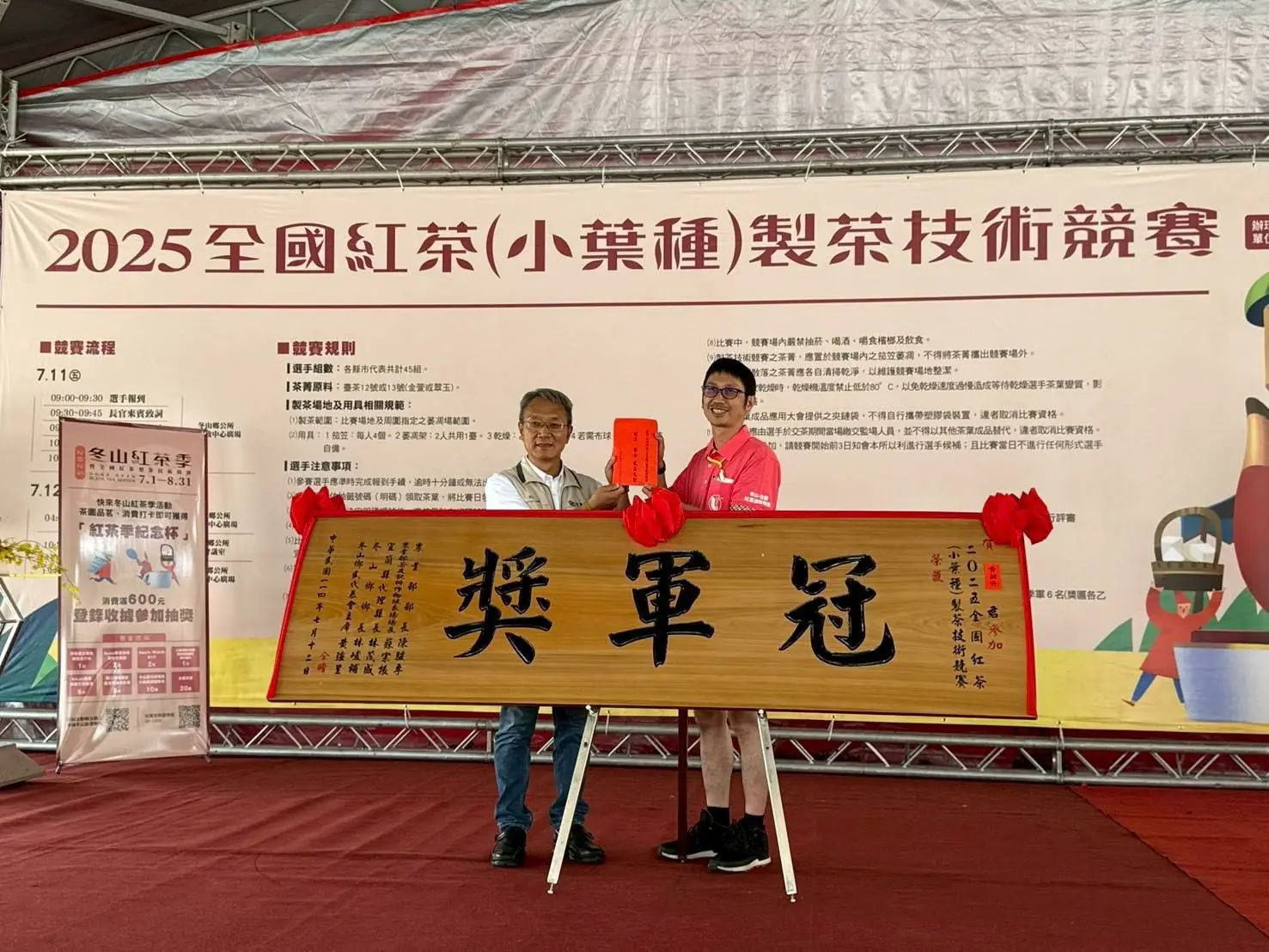 頂芳製茶的李柏蒼與李柏儀兄弟,分別於嘉義縣大阿里山茶區清香烏龍茶競賽中勇奪冠軍與季軍,在梅山鄉紅茶賽中亦榜上有名。番路鄉茶葉產銷第一班的黃建閎,也不遑多讓,在「2025阿里山春季優良茶分級包裝競賽」中,從眾多好茶中脫穎而出,榮獲特等獎肯定,實力備受肯定。