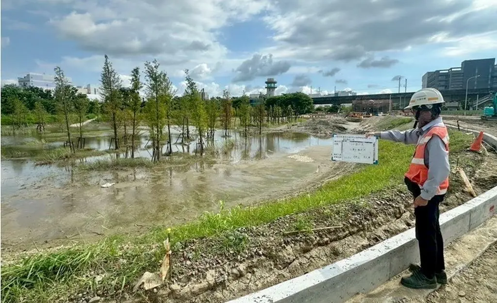 陳淑美指出,目前尚在施工中的多個重劃區滯洪池也提早發揮功能,安南區怡中市地重劃區滯洪量9053噸,永康區的崑大路市地重劃區滯洪量6205噸,六甲頂醫療重劃市地重劃區滯洪量3483噸,位於南區喜樹灣裡市地重劃區滯洪量11800噸;各開發區施工廠商平時需維護工區及週遭排水系統,暴雨期間加強工地巡查確保水路通暢無虞,並協助將周遭排水引流至開發區內,透過滯洪設施及出流管制作為緩解區域排水負荷,落實開發與防災並重理念。