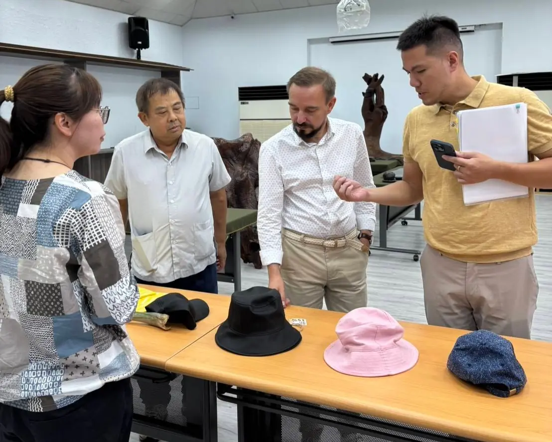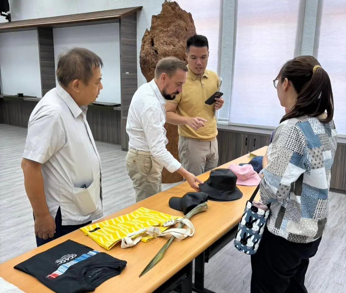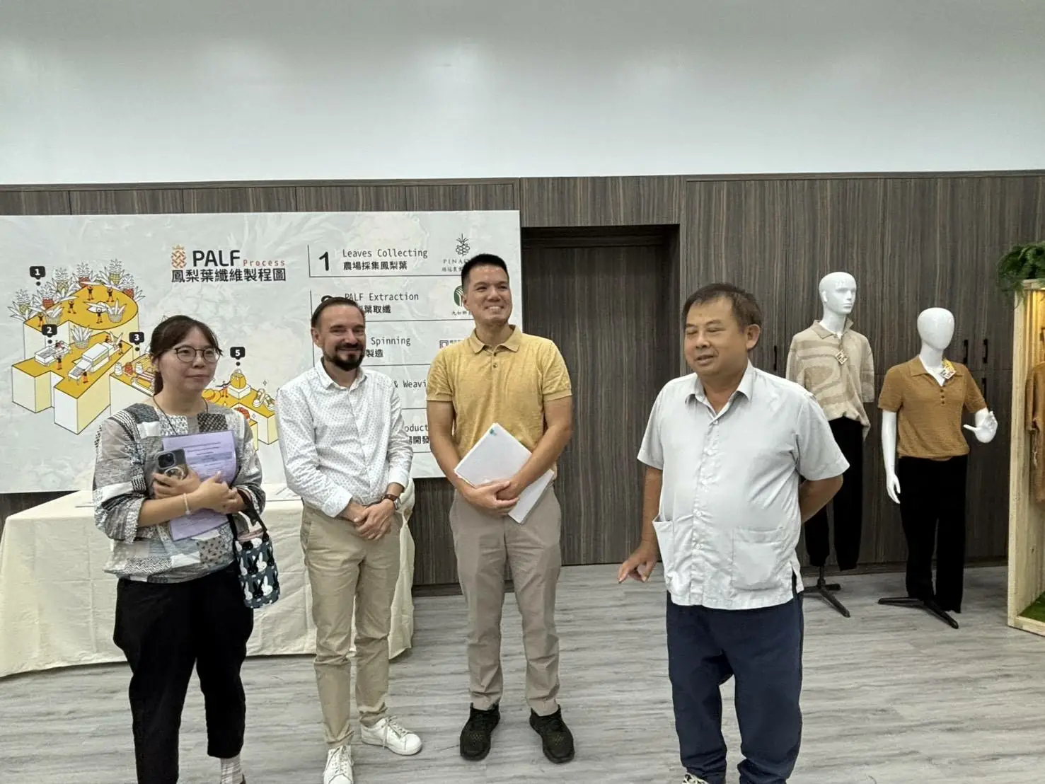 離開時事務官還對鳳梨纖維製成的針織衫很有興趣。