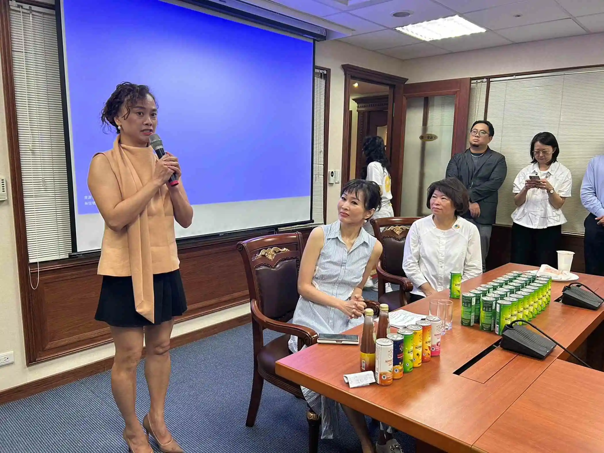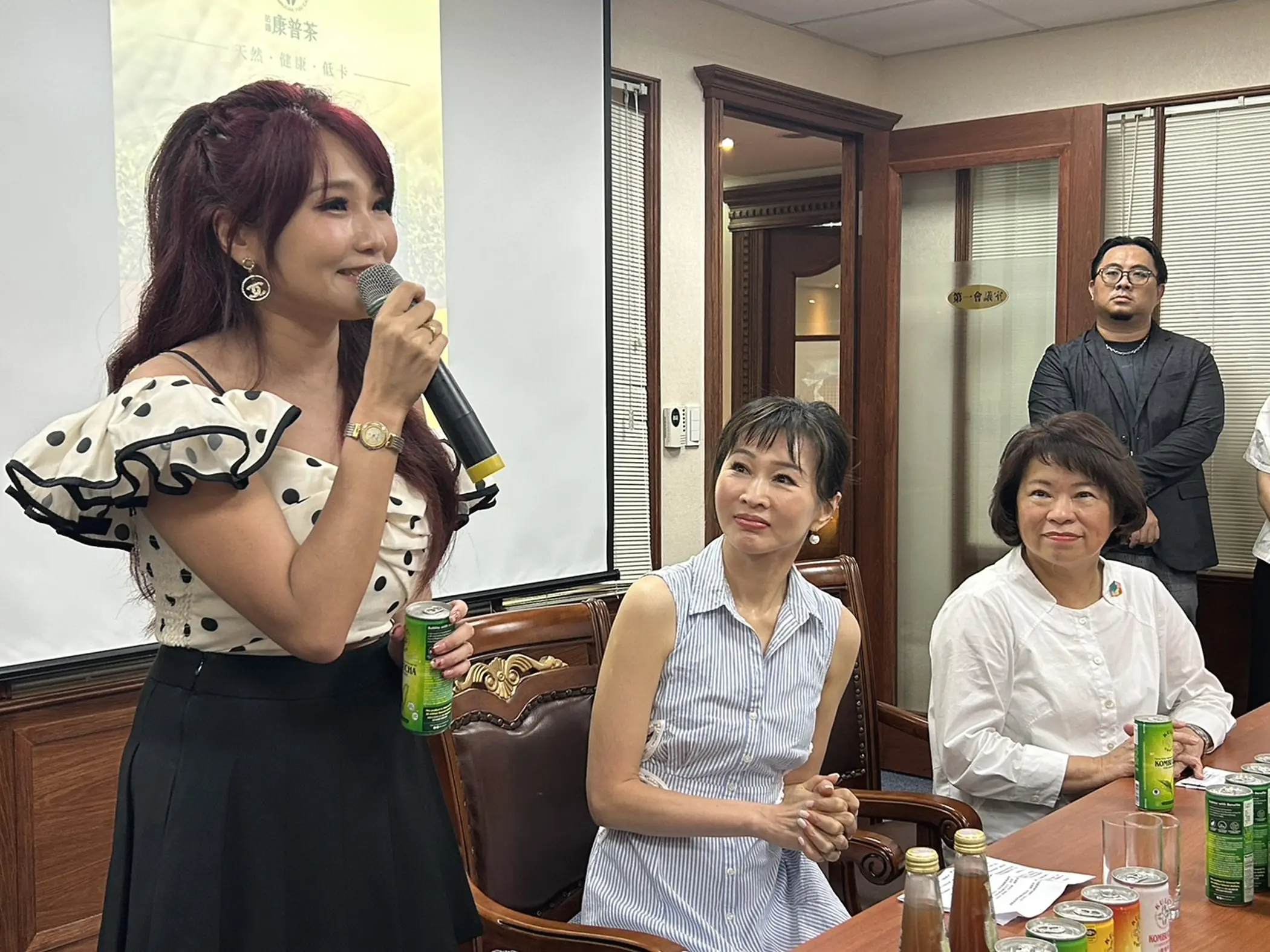 魔咕飲生技康普茶獲世界金牌與歐盟認證,團隊王宇芬總監向黃敏惠市長介紹產品