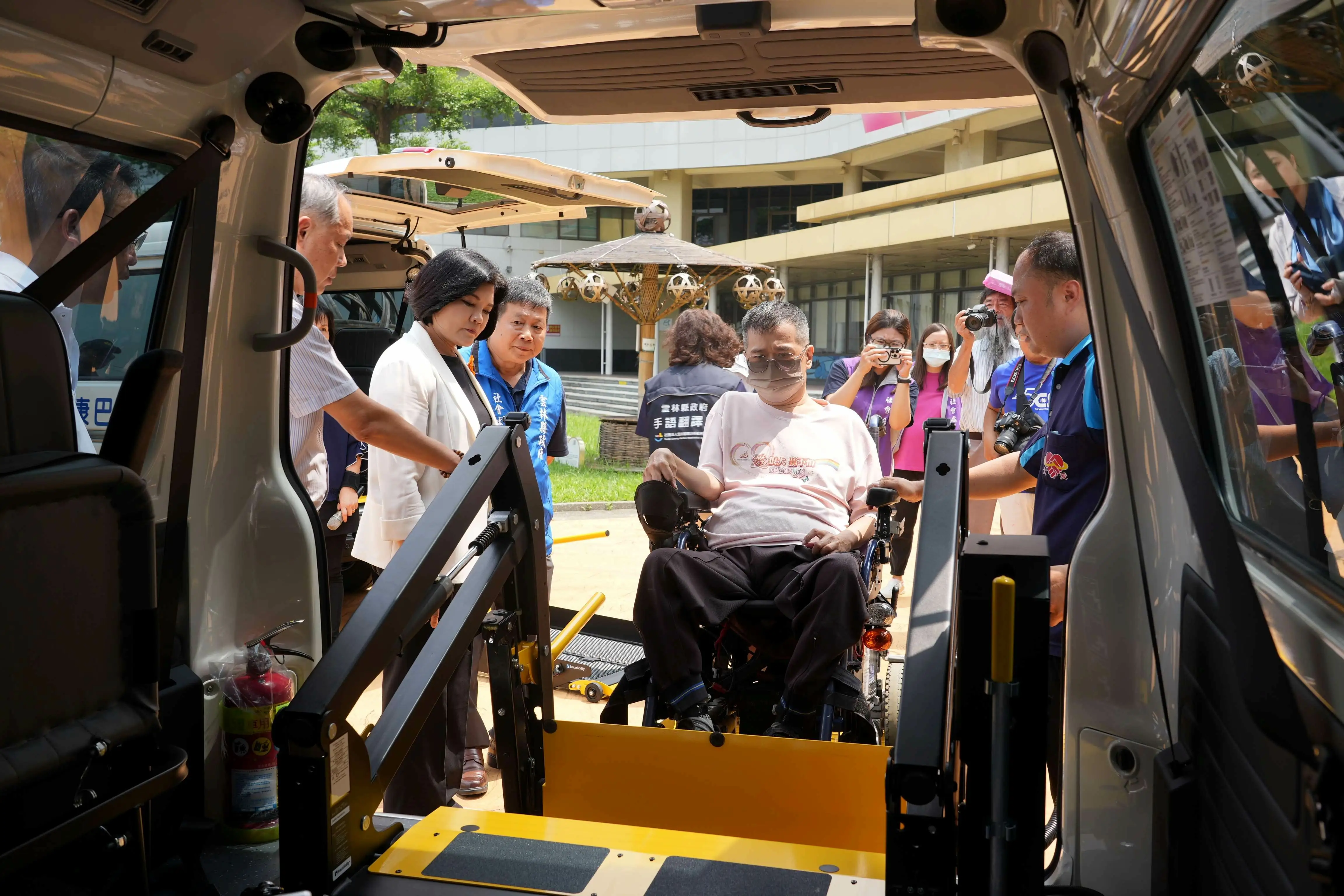 郭進源董事長今年再捐贈升級版雙人復康巴士可搭乘2輛輪椅 (黃金郎攝)