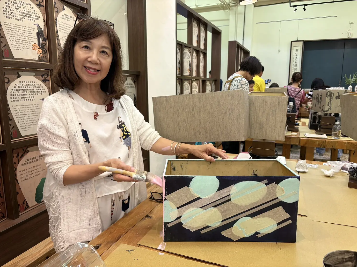 嘉義酒廠表示,本次活動最辛苦的角色莫過於是嘉義市美術協會黃寶賢理事長,號召20位知名藝術家齊聚參與「燈具彩繪」藝術活動。包括油畫、壓克力彩、書法、水墨等多種創作風格。將各自獨特的藝術風格和情感表達融合,創造出一系列獨具魅力的燈具藝術作品。讓每盞燈具不僅僅是一個照明工具,而是變成了一件獨立的藝術品,更是一個有故事、有情感的作品。