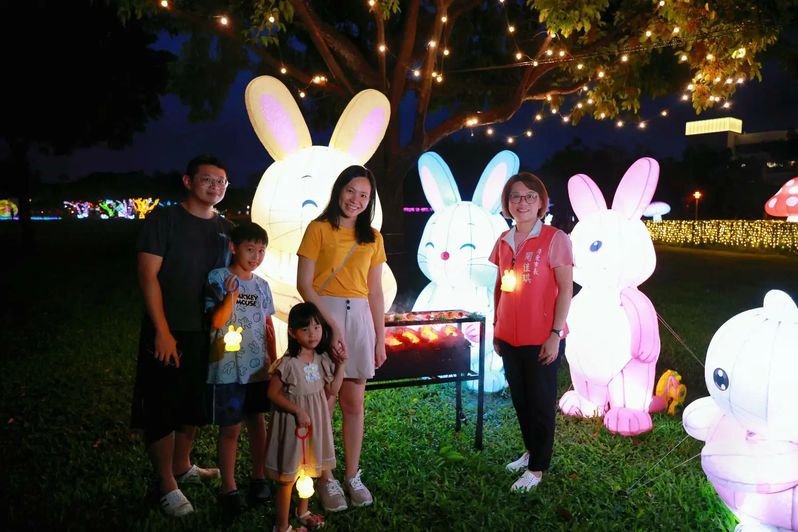 市長周佳琪表示,現代人生活節奏快,容易忽略節慶的儀式感,而中秋節作為傳統的重要節日,更應透過活動喚起團圓與幸福的意義。這次市公所設計的玉兔小提燈,取材自中秋傳說「玉兔搗藥」,並搭配園區內具有童趣與文化意涵的藝術燈飾,讓民眾在賞燈與提燈中找回節慶的感動。其中,燈飾「兔飽飽」以圓潤可愛的玉兔慵懶坐臥在星光草原中,象徵中秋團圓與豐收的喜悅;而「萬家香」則將台灣特有的中秋烤肉文化轉化為療癒的燈光語彙,勾起人們對家庭、對家鄉的思念與美好回憶。