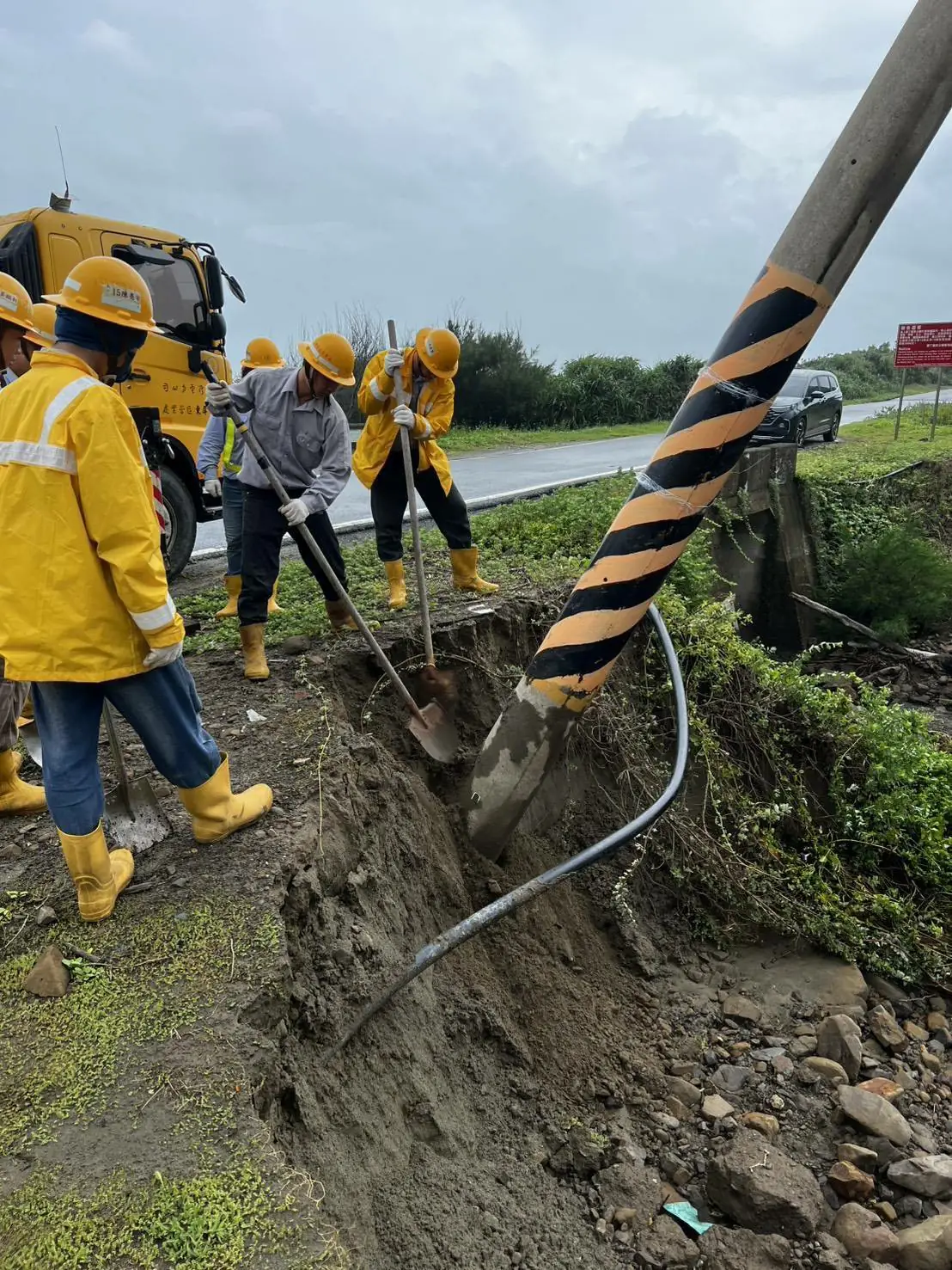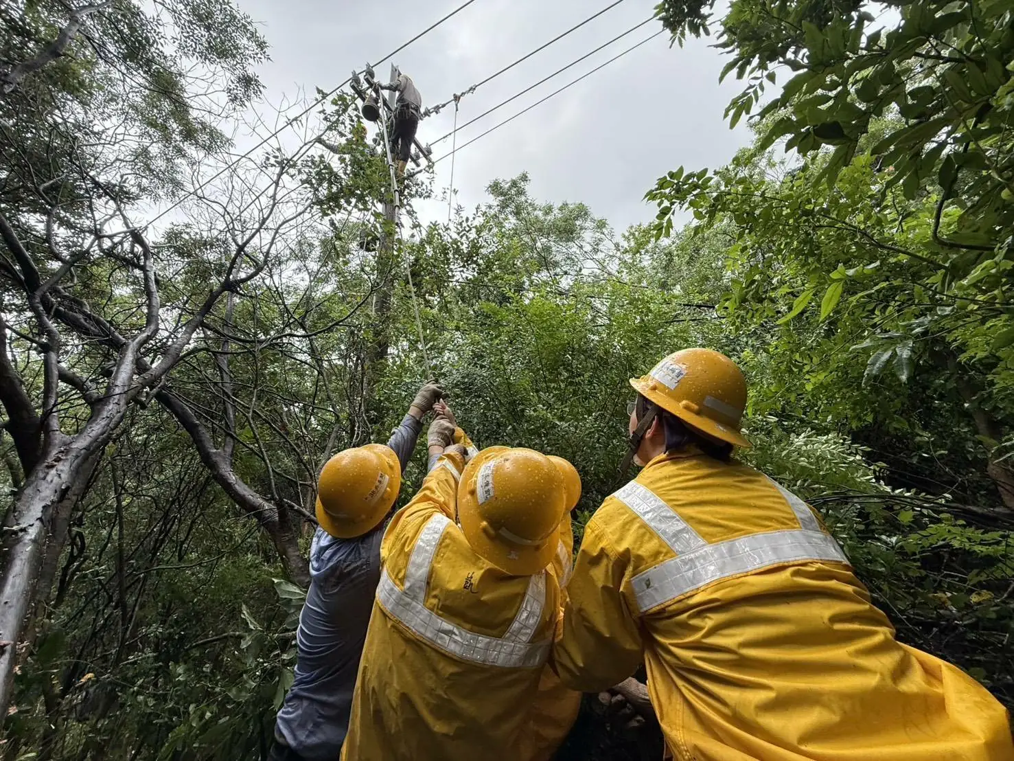 圖:台電人員克服萬難搶修。(台電屏東區處)