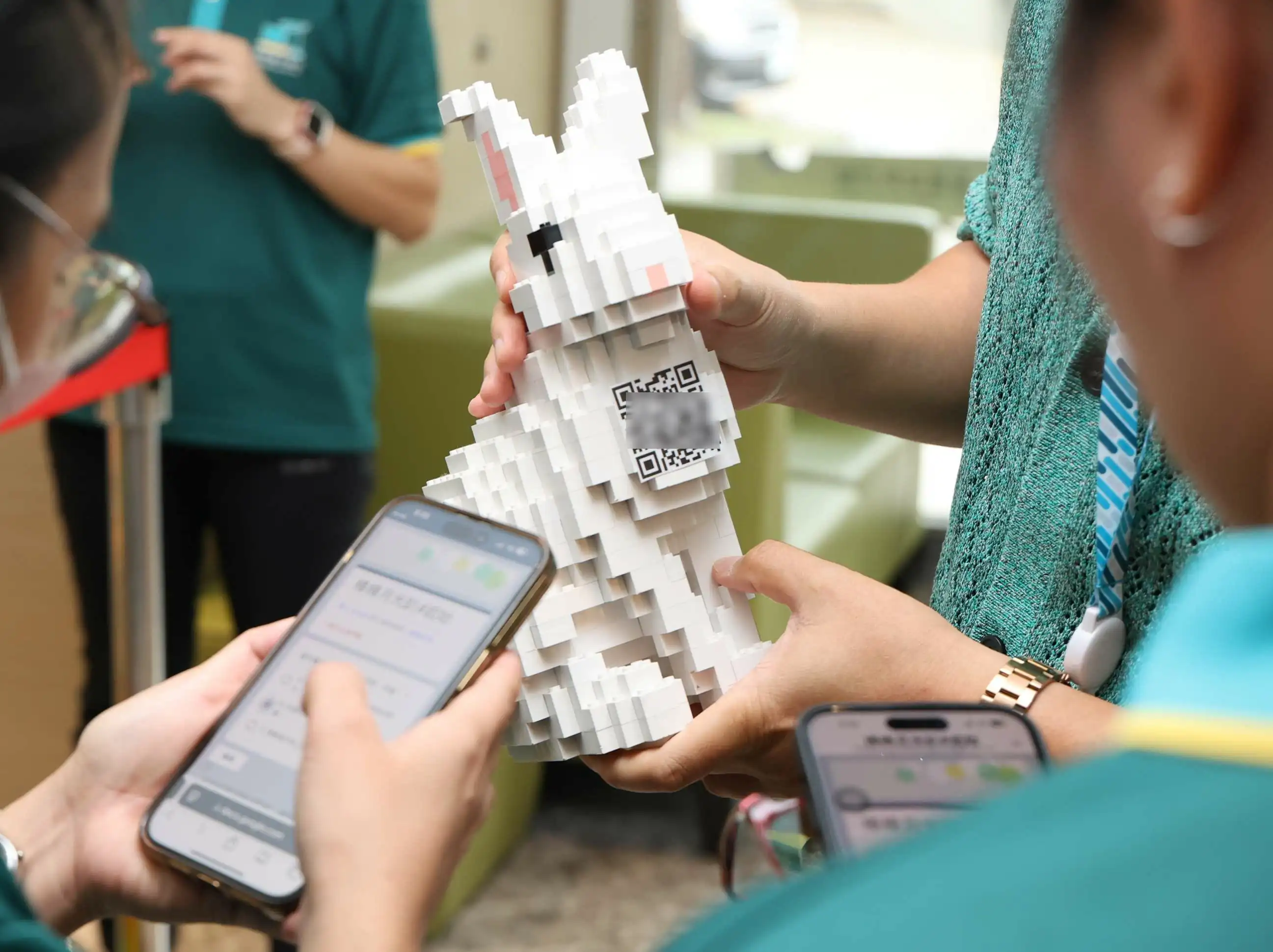飯店「中秋月光趴」限定連續假期,邀請住宿親子晚間闖關,遊戲結合中秋月兔、現在3C,邀請積木白兔當關主,透過手機掃QR CODE,挑選闖關路線、找兔子關主與解謎,腦力激盪通關後,就能獲得積木商品一盒。