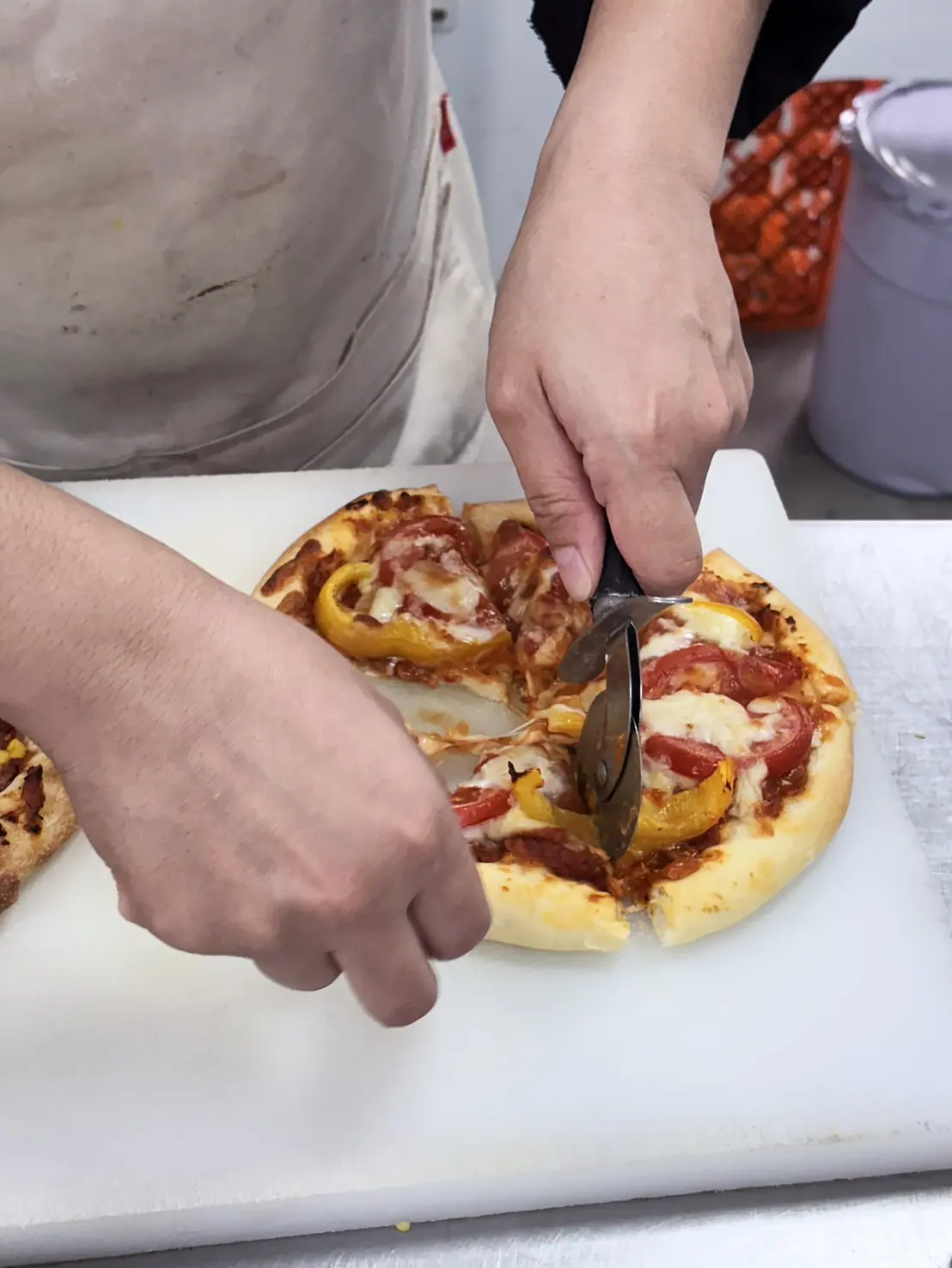 PIZZA趴則是奧朵爾主廚教學,邀請親子雙人搭當到門市內用區,DIY擀餅皮,決定PIZZA厚度,並放起司、火腿與玉米等內餡,而且PIZZA當天現烤,下課前就能領取「自己做的PIZZA」,因為剛出烤箱熱騰騰,飯店小叮嚀「等PIZZA降溫一下再品嚐。」