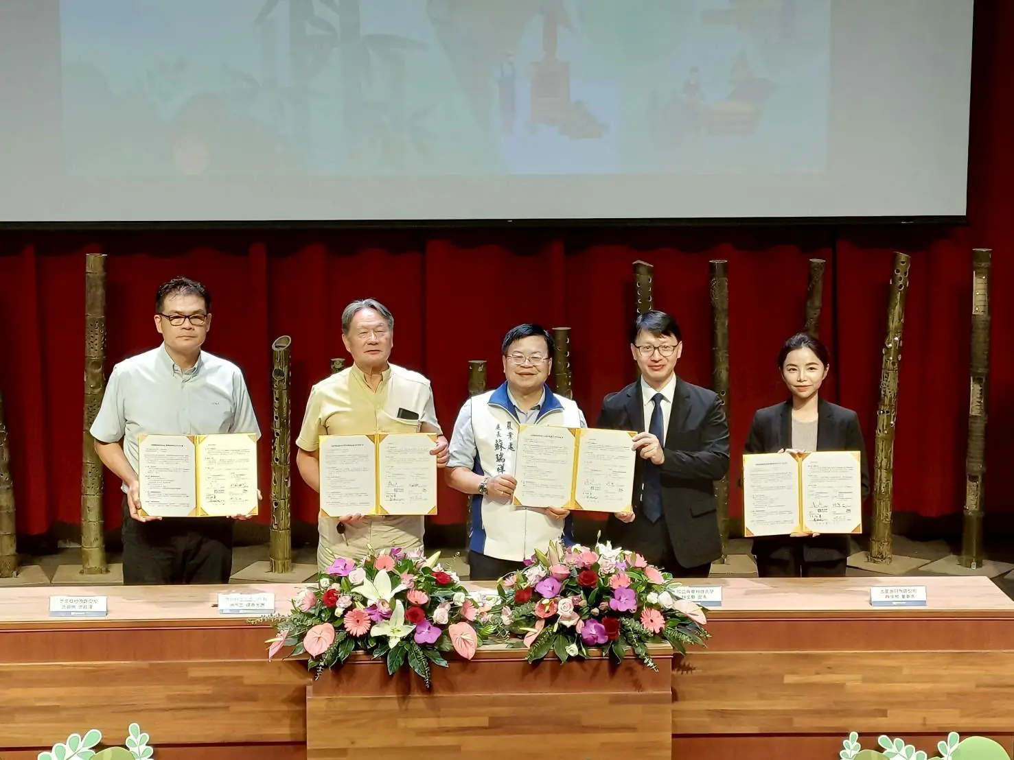 上圖:屏科大應南投縣政府推動「南投縣竹材產業新興發展計畫」邀請,於南投縣府國際會議廳見證兩項合作備忘錄簽署(MOU)儀式。(屏東科技大學)
