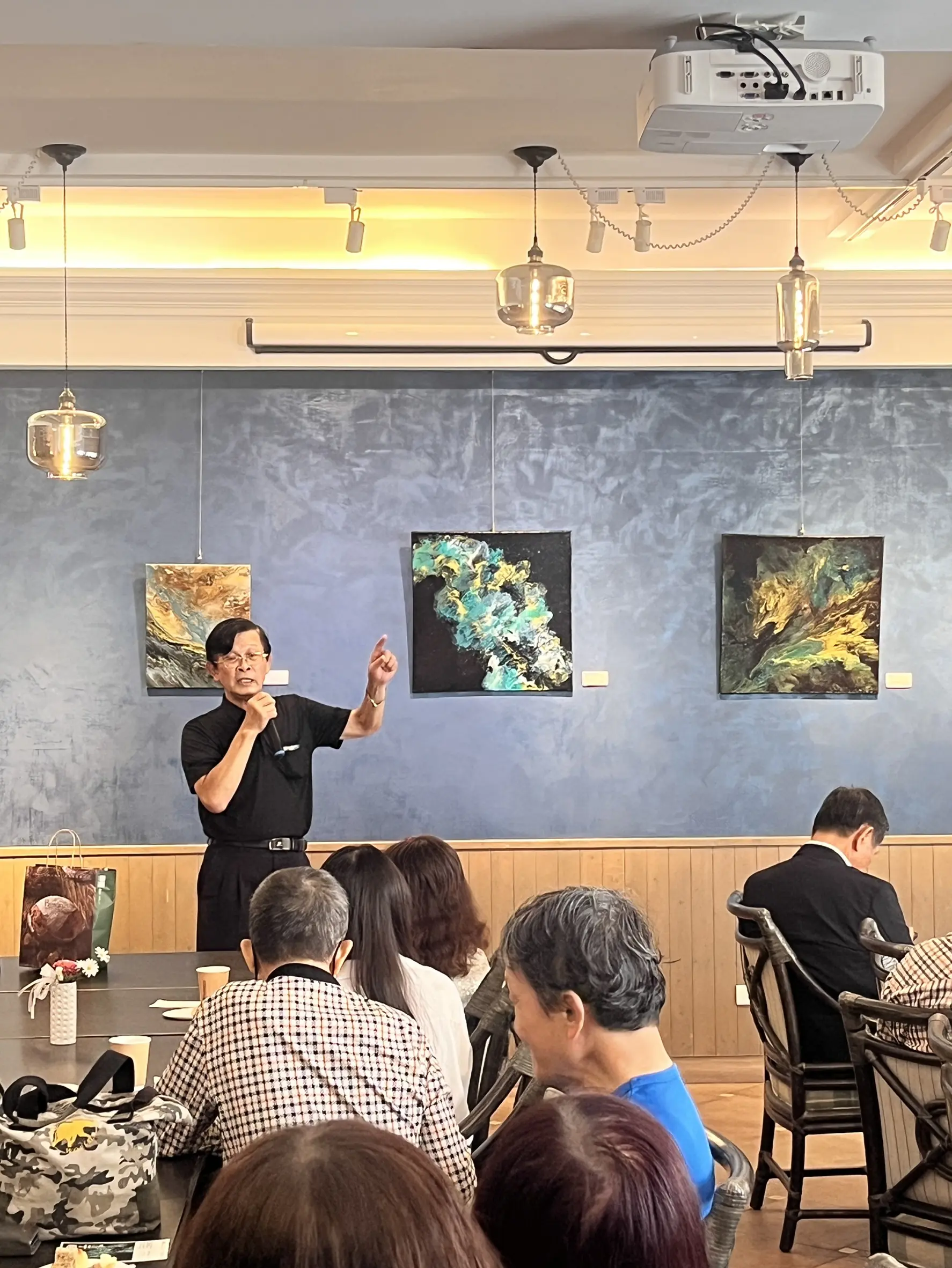 【記者陳雯萍高雄報導】藝術家郭日榮《觀自在》個展於10月2日下午在帕莎蒂娜烘焙青海餐廳舉行開幕茶會,帕莎蒂娜烘焙餐廳董事長許正吉親自主持,他盛讚郭日榮的創作,自成一格,為藝術創作找到新的再出發。這次共展出20件流動畫作品,帶領觀眾在顏料的自由流動間,重新找回心靈的自在。