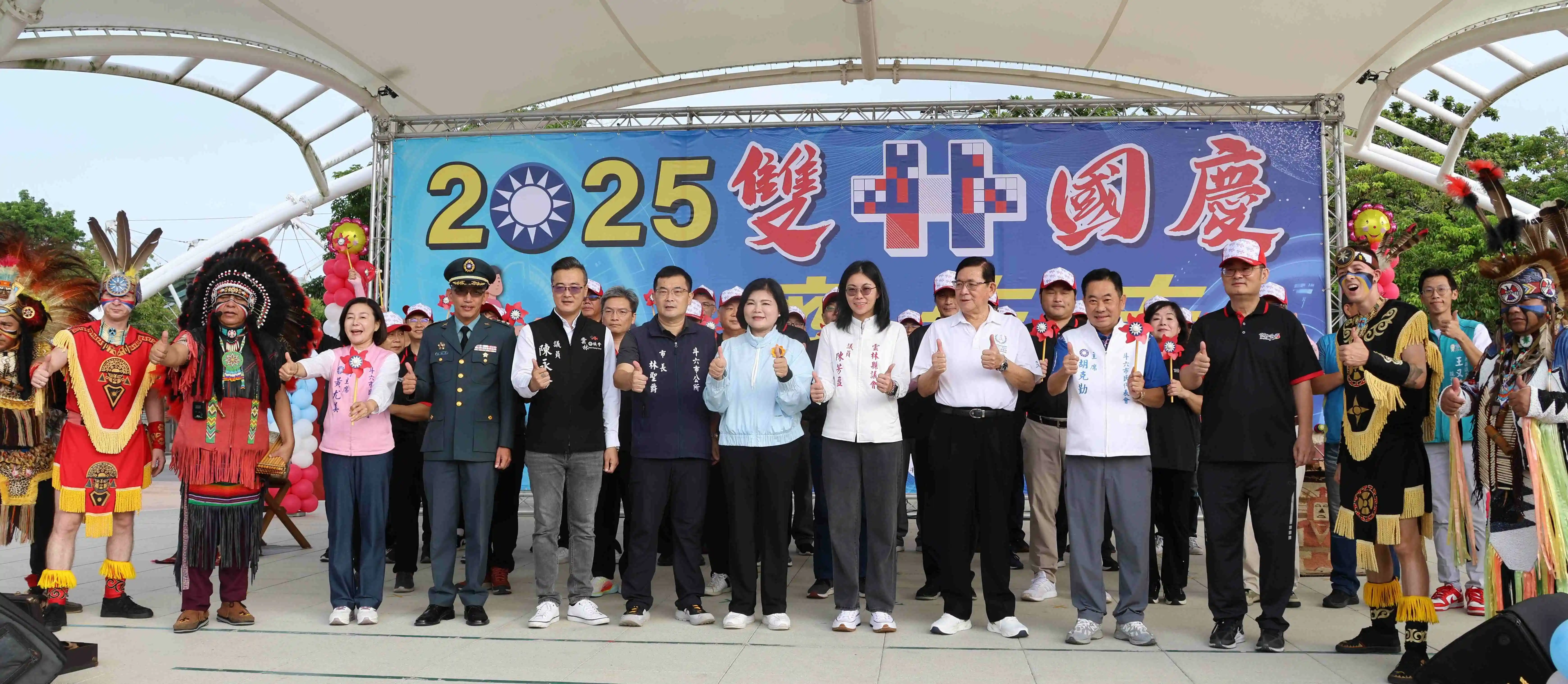 雲林縣長張麗善、斗六市長林聖爵、立委張嘉郡與數百名民眾參與「2025雙十國慶齊步走」升旗暨健行活動,氣氛熱鬧滾滾 (黃金郎攝)