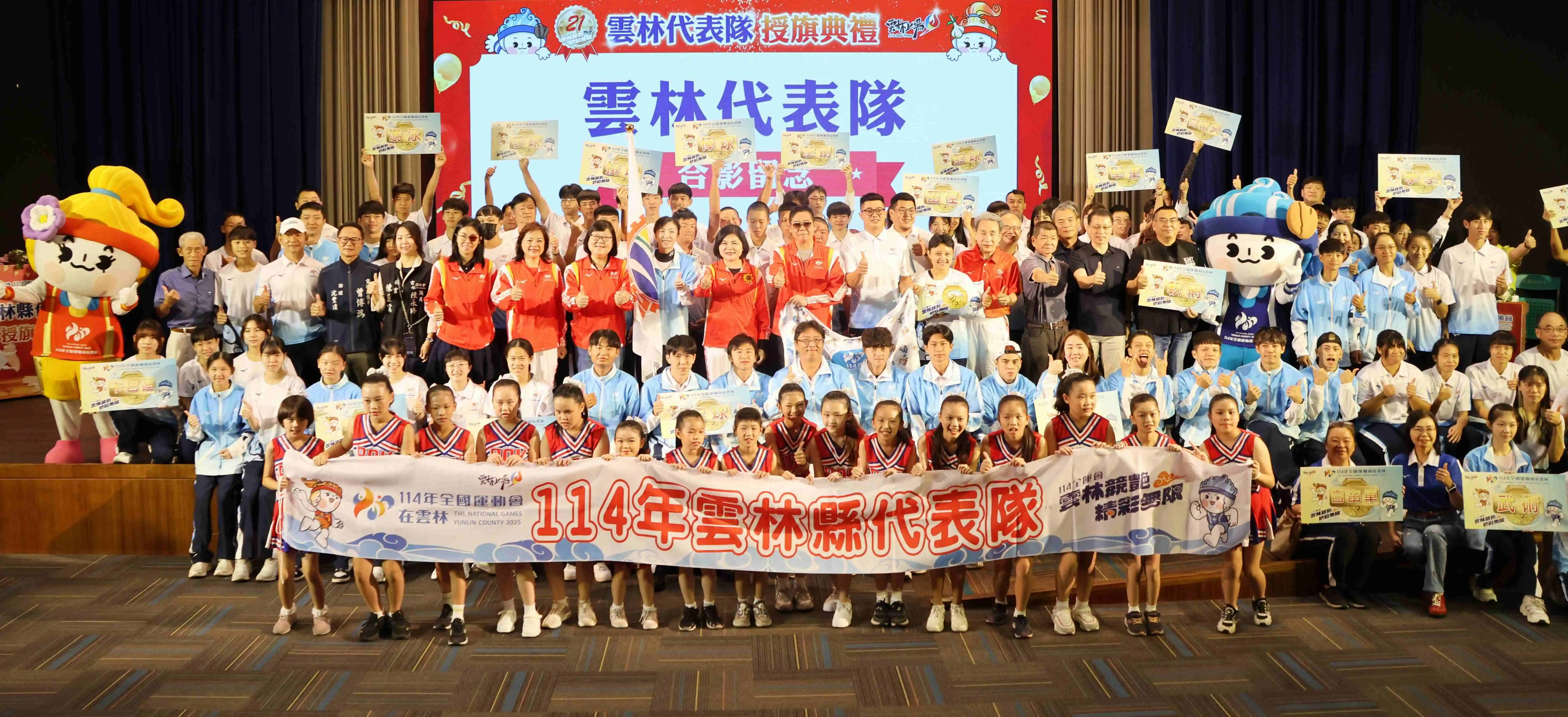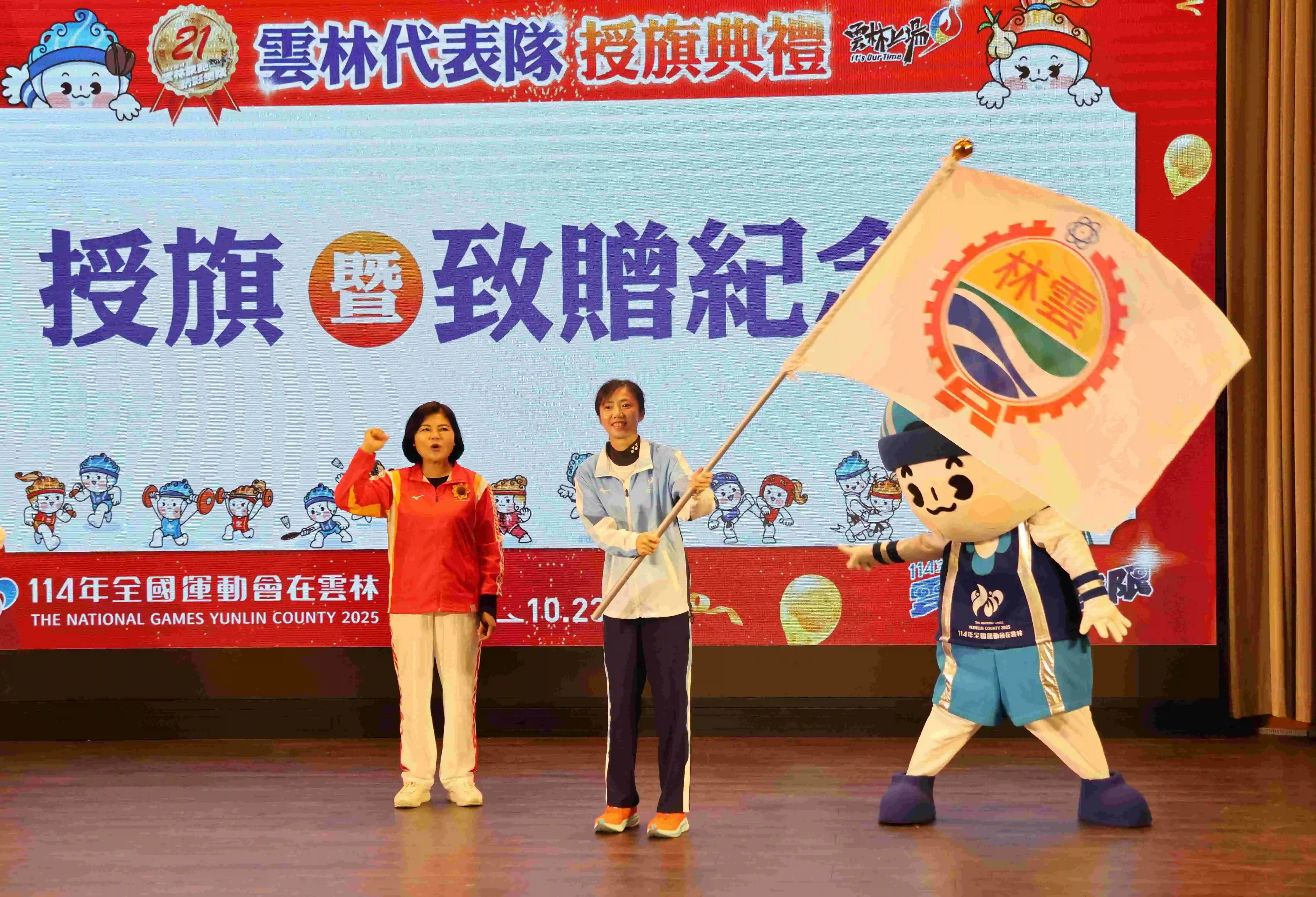 【記者黃金郎雲林報導】114年全運會即將在10月18日正式登場,雲林縣長張麗善今(十四)日上午以東道主身份授旗給雲林縣代表隊,勉勵選手們以地主隊優勢勇奪佳績,更期許能拿到21金目標為雲林爭光。