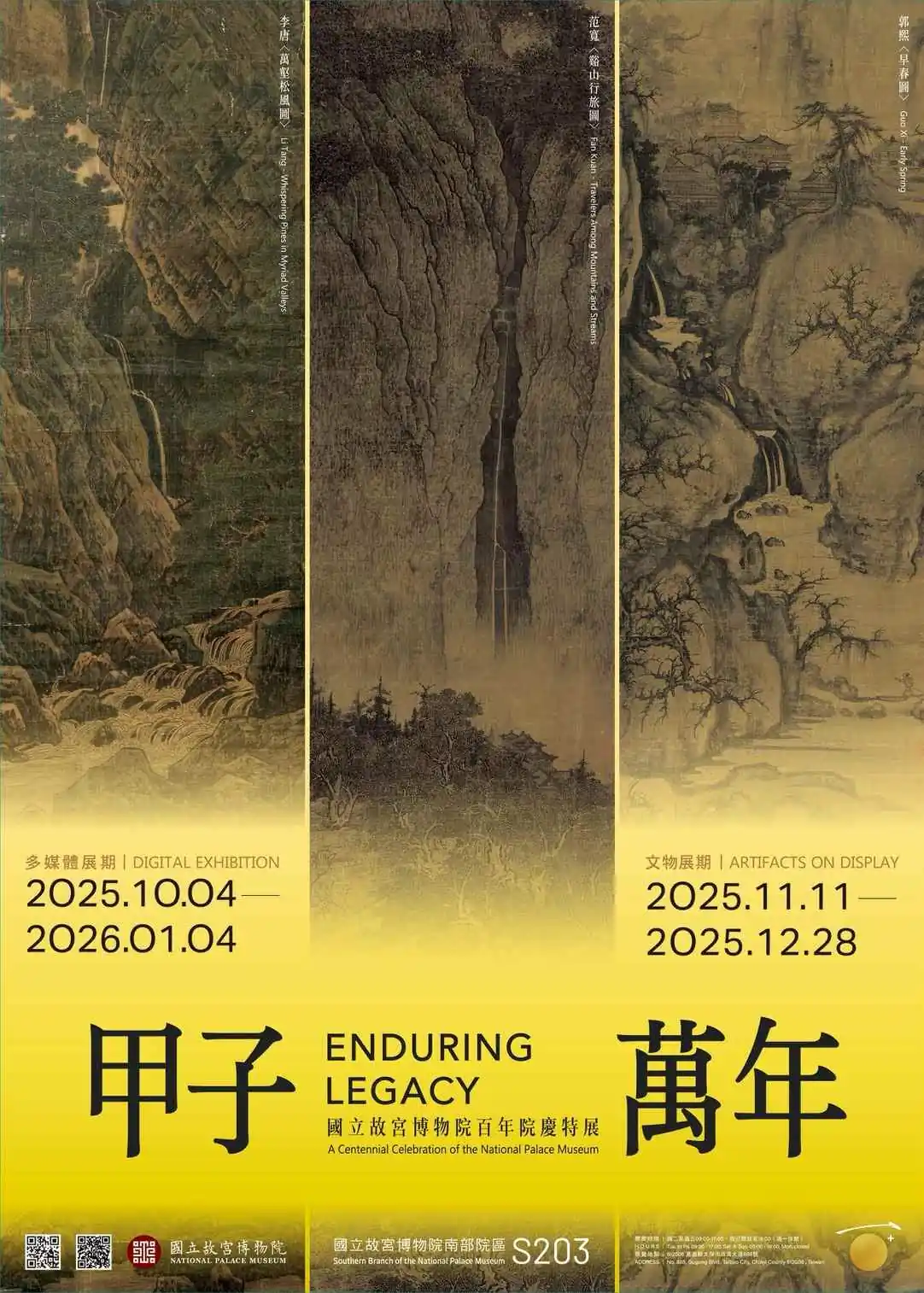 甲子萬年:國立故宮博物院百年院慶特展,北宋山水畫 故宮南院S203展廳,文物展期:114年11月11日~12月28日,多媒體展期:即日起~115年1月4日,*為維護參觀品質,請於線上預約或依人流管制現場排隊入場: