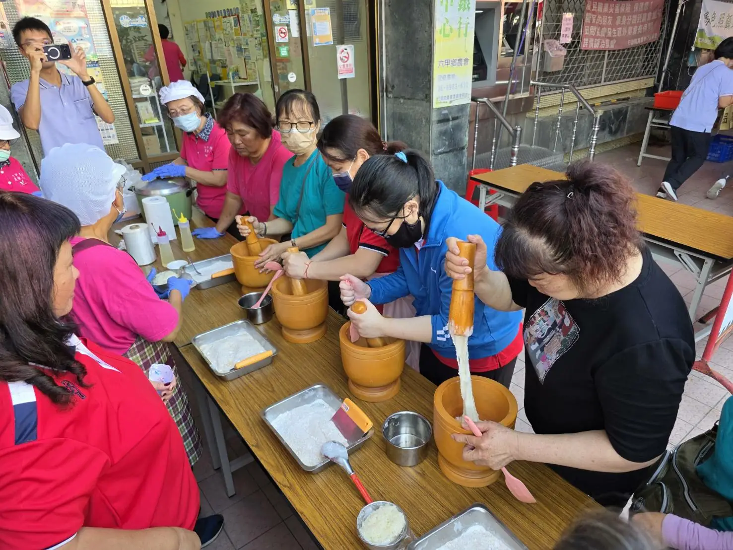 參與民眾體驗搗麻糬手作,現場氣氛熱絡。(黃潔攝)