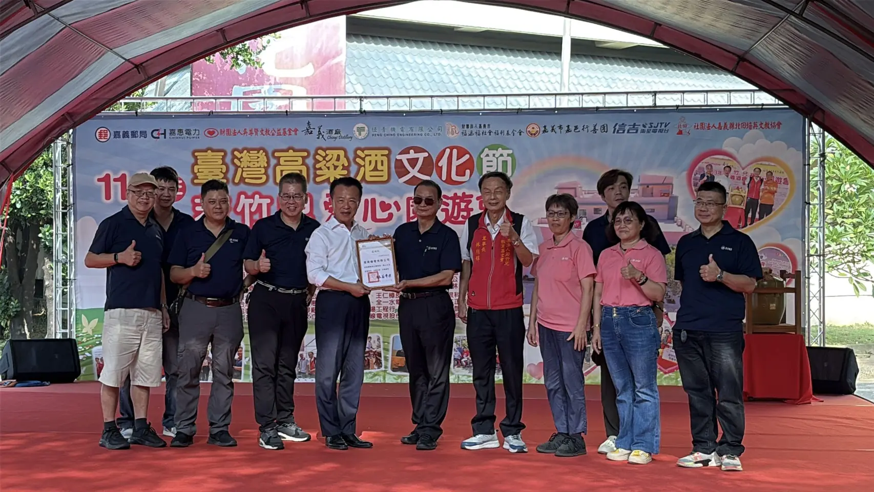 【記者張文一嘉義報導】台酒公司嘉義酒廠與若竹兒智能發展中心九日在嘉義酒廠合辦「高粱酒文化節暨若竹兒愛心園遊會」,最受矚目的慈善拍賣由翁章梁客串拍賣官,嘉義酒廠提供21年酒齡的「27公升玉山八年陳高」小龍開運甕酒進行拍賣,最終由民雄鄉農會總幹事陳加茂以13萬8,000元得標。所得全數捐贈若竹兒智能發展中心,由若竹兒教育基金會董事長林朋輝致贈感謝狀