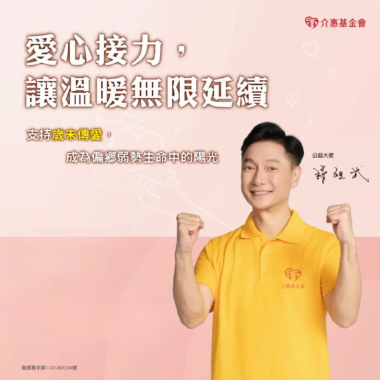 圖2謝祖武擔任介惠基金會「傳愛大使」呼籲大家以行動支持偏鄉長輩與弱勢家庭。(介惠基金會)