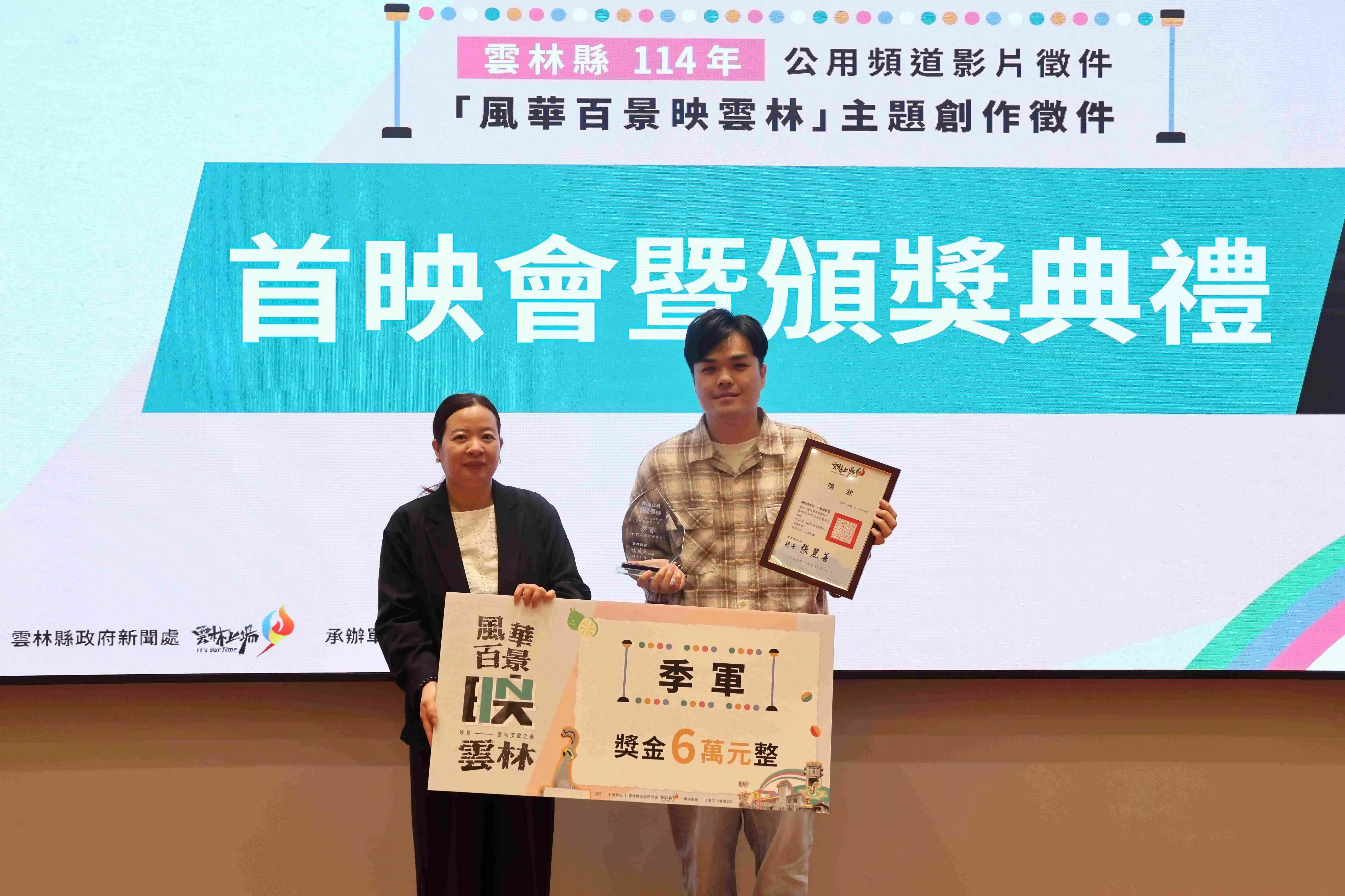 雲林縣政府114年公用頻道影片徵件頒獎,由杜政庭導演執導的「阿公的哺哺車」奪冠