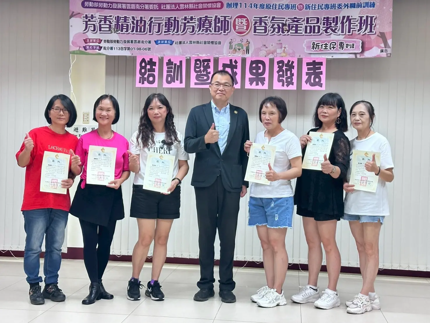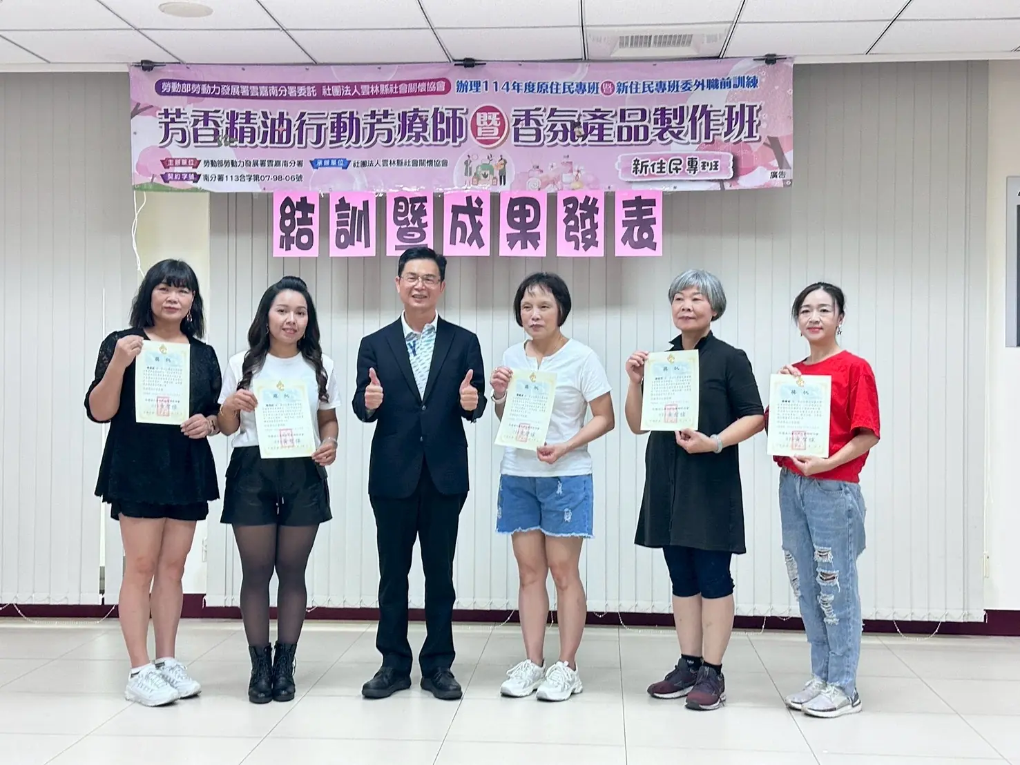 此外,雲林縣社會關懷協會為輔導失業民眾增加就業謀生能力或創業技能,特別向勞動部勞動力發展署雲嘉南分署申請辦理「芳香精油行動芳療師暨香氛產品製作班(新住民專班)」,自今年9月1日至11月18日辦理職訓課程,讓失業者有機會習得一技之長,並結合此次徵才活動辦理結訓暨成果發表及公益推廣。