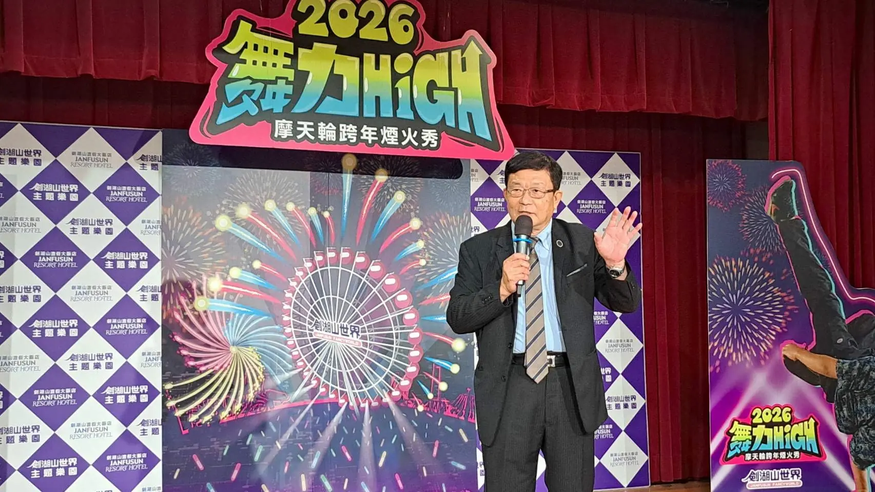 【記者黃金郎雲林報導】雲林縣古坑鄉劍湖山世界為迎接2026年到來,推出亞洲唯一的摩天輪跨年煙火秀,安排「舞擺環山煙火」及「炫彩摩天輪雷射燈光秀」,打造長達10分10秒象徵十全十美的璀璨展演,目前正釋出最後「施放保留席」;董事長尤義賢、總經理曾慶欑等人昨(二十七)日上午在宣傳記者會呼籲民眾手刀搶購,以免向隅。