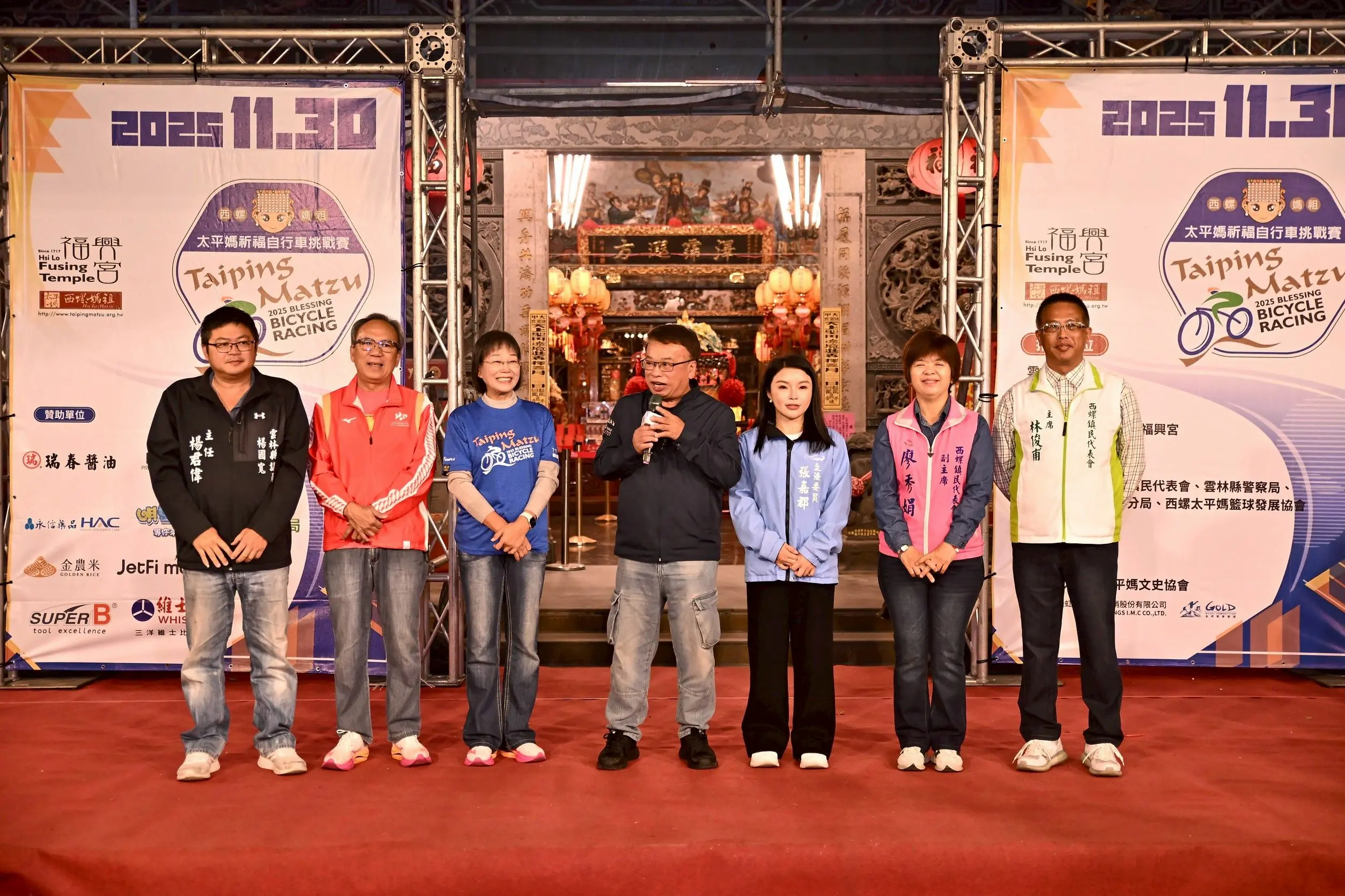 由西螺福興宮主辦「2025太平媽祈福自行車挑戰賽」,以「騎旅×祈願×信仰」為主軸,為將祈福與騎旅結合首次規劃103K挑戰組與50K休閒兩個組別,提供雙組別選擇滿足多元車友需求,也特別推出活動限定款西螺大橋紀念款車衣,吸引千位車友齊聚西螺,以實際行動騎上信仰之路,用雙腳及雙輪將騎出祝福、騎出心願、騎完一場心願成真的祈福旅程。