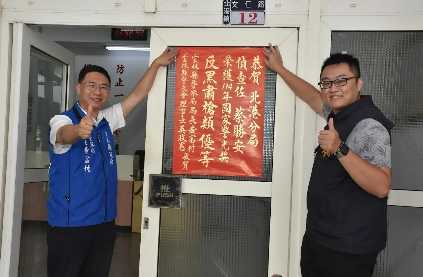 黃富村局長日前率領各幹部一同前往刑大及北港分局張貼紅榜,向同仁表達祝賀、慰勉辛勞;並表示本次榮獲國家警光獎不僅是個人與團隊的榮耀,更象徵縣警局在治安維護上的努力深獲社會肯定,未來將持續強化科技偵查能量、提升跨機關合作效能,全力打擊黑槍、詐欺、暴力及環保犯罪,全方位為縣民打造更安全的生活環境。